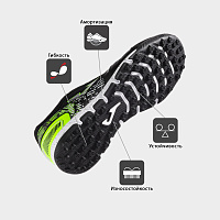 Футбольные бутсы для игры на синтетических или ковровых покрытиях. Модель классического дизайна. Верхняя ее часть в носочной области выполнена из натуральной кожи премиум-класса, обеспечивающей гибкость и хороший контроль мяча. Кроме того, при изготовлении верха используется «дышащий» сетчатый текстиль, пропускающий воздух. Кожа перфорирована по системе VTS, что способствует доступу воздуха. Носок усилен синтетическим материалом для защиты и повышения качества и силы ударов. Пятка также усилена, для защиты от внешних воздействий. Стелька из термоформованного EVA и межподошва из филона обеспечивают амортизацию. Линии FLEXO на каучуковой подошве делают турфы гибкими, а движения стопы во время бега – естественными.