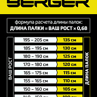 Скандинавские палки BERGER Serenity – модель для тех, кто предпочитает высокое качество и максимальный комфорт! Использование Serenity – полезное занятие, улучшающее общее физическое состояние организма, поднимающее настроение и приносящее пользу при эксплуатации. Палки для скандинавской ходьбы Serenity состоят из двух секций, их просто перевозить и удобно хранить. Уникальный представитель среди коллекций BERGER - для их создания используется прочный и легкий алюминий 7075 пробы, который также применяется в авиационном строительстве. Материал практичен, оптимален для интенсивных тренировок и длительной эксплуатации. Съемный, анатомической формы темляк для скандинавских палок позволяет быстро отстегнуть изделие для того, чтобы ответить на звонок или попить воды. Анти-шок система улучшает амортизацию, а стальной наконечник делает тренировки еще безопаснее. В комплекте с палками идёт чехол с плечевой лямкой. Цените тактильные и эстетические параметры? Высококачественная пробка в конструкции ручки, приятный для глаз дизайн палок для скандинавской ходьбы, - в Serenity собрано все, чтобы заниматься спортом с удовольствием. Преимущества: Скандинавские палки изготовлены из авиационного алюминия 7071; Высококачественная пробковая ручка с пластиковой базой; Система анти-шок; Съемный темляк анатомической формы; Наконечники и ограничительные кольца в комплекте; Чехол с плечевой лямкой в комплекте. Характеристики: Материал палки: алюминий 7075 Количество секций: 2 Диаметр секций, мм: 16/14 Наличие анти-шок системы: да Минимальная длина палки, см: 77 Максимальная длина палки, см: 135 Максимальный вес пользователя, кг: 120 Материал ручек: пробка с логотипом Berger + полипропилен Длина ручки, см: 15,5 Тип перчатки: перчатка/темляк съемный Материал перчатки/стрепа: полиэстер с логотипом Berger Длина перчатки/темляка, см: 32 Ширина перчатки/темляка, см: 9,5 Количество насадок в комплекте, шт: 2 Количество колец ограничительных, шт: 2 Диаметр ограничительных колец, см: 5,3 Толщина ограничительных колец, мм: 3 Материал наконечника: сталь Вес пары палок без упаковки, гр: 530 Комплектация: чехол с плечевой лямкой в комплекте Тип упаковки: индивидуальный запаянный пакет