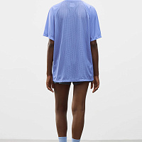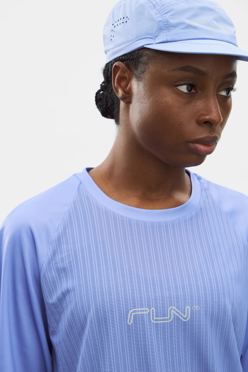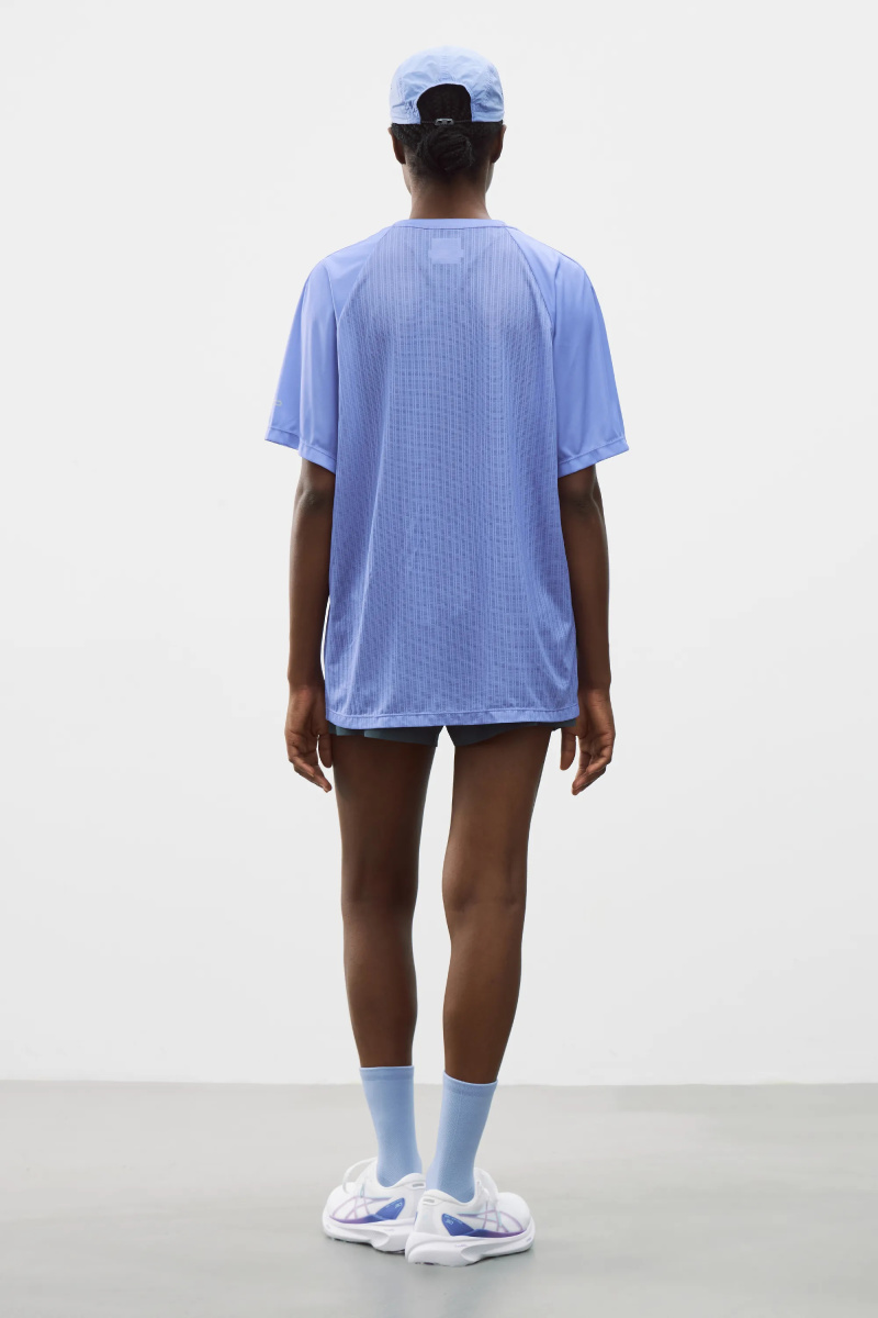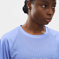 Футболка для бега из комбинированной ткани с рукавами реглан. Легкая модель прямого кроя эффективно выводит лишнюю влагу и сохраняет ощущение комфорта за счет перфорированной структуры основного материала. Фирменные логотипы на груди и рукавах.