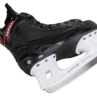 Материал ботинка, выполнен из морозостойких материалов. Удлиненный язычок из фетра и винила. Лезвие из нержавеющей стали, благодаря чему коньки можно хранить практически в любом помещении. Мыс из ударостойкой пластмассы долго сохранит свои свойства. Коньки представлены в размерах с 32 по 45. Особенности модели: Стильный черный цвет Мыс из ударопрочной морозостойкой пластмассы Лезвие конька из нержавеющей стали Удлиненный язычок из фетра и винила Лайнинг - вельвет Ботинок Внутренний ботинок - несъемный Подкладка - синтетика Стелька - съемная Подошва - композит Внешний ботинок - синтетика Застежка - шнурки Лезвие Форма - хоккейное Материал - легированная сталь