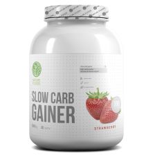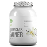 Nature Foods Slow Carb Gainer – это высокобелковый гейнер с разноцепочными углеводами. Необходим прежде всего для тех, кто испытывает проблемы с набором веса и мышечной массы. Идеально подходит для восполнения энергии тем, кто имеет не стабильный рацион питания, с большими перерывами между приемами пищи. А так же для сбалансирования своей диеты по белкам и углеводам. Прием Nature Foods Slow Carb Gainer будет актуален и для тех видов спорта, которые испытывают огромные энерготраты, при 2-3 разовых тренировках в день. Прием после тренировки моментально запустит синтез гликогене и белка, а значит укорит процесс восстановления. Размер порции: 100 грамм (2 мерные ложки) Количество порций: 30 Состав на одну порцию: Калорий – 360 Жиры – 2 г Углеводы – 65 Белки – 20 Ингредиенты: мука овсяная, мальтодекстрин, концентрат сывороточного белка, соевый изолят, лецитин, ароматизатор пищевой, сукралоза, казеин, сухое обезжиренное молоко, ксантановая камедь Рекомендации по приему: Смешать одну порцию (2 мерные ложки) с 400-700 мл воды или молока (или его аналогом). Принимать 1-2 порции в день между приемами пищи или после тренировки, в зависимости от задач.