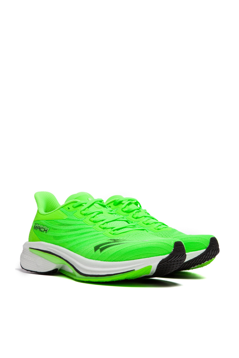 Беговые кроссовки MACH 4.0 подходят для скоростных тренировок, а также полумарафонов. Модель поможет атлету эффективнее менять скорость, а также преодолевать повороты, не сбавляя темпа. Обновленная конструкция MACH 4.0 способствует более быстрому старту, увеличению каденса и большему ощущение легкости по сравнению с предыдущем поколением. Вес подошвы был уменьшен на 20 граммов, а уровень возврата энергии стал достигать 83%, увеличив отскок. Промежуточная подошва выполнена с технологией NITROEDGE и обладает высоким уровнем амортизации, оставаясь при этом легкой, упругой и прочной. NITROEDGE — новаторская технология вспенивания материала с использованием азота. Верх выполнен из дышащей сетки с термополиуретановыми вставками. Усовершенствованная подметка не только позволяет мгновенно ускоряться, но и быстрее преодолевать повороты на высокой скорости. MACH 4.0 можно использовать для тренировок на стадионе или манеже. Вес кроссовка в размере US 8 — 235 г. Средний дроп - 6 мм. A-GRIP PRO Материал подметки с высоким уровнем сцепления и износостойкостью. Может быть как вулканизированным (резина), так и полимерным. Благодаря специальному составу и узору протектора вы можете быть уверены, что кроссовки будут обеспечивать сцепление, даже на крутых поворотах. A-WEB Трехслойный материал верха: верхний и нижний слои - это однослойные сетки, а средним уровнем являются соты, в которых возникает эффект циркуляции воздуха. Мягкий, дышащий и прочный материал с высокой степенью адаптивности (растяжения в разных направлениях). NITROEDGE Лёгкий пеноматериал, изготовленный из EVA или TPU (в зависимости от модели) с использованием вспенивания азотом вместо традиционных химических методов, обеспечивает эффективную амортизацию и высокий уровень возврата энергии (отскок). Азот обладает низкой химической активностью, поэтому он не взаимодействует с пеноматериалом (в отличие от химических реагентов), что придаёт пене высокую износостойкость и долговечность. Коэффициент возврата энергии составляет 82–84 %.