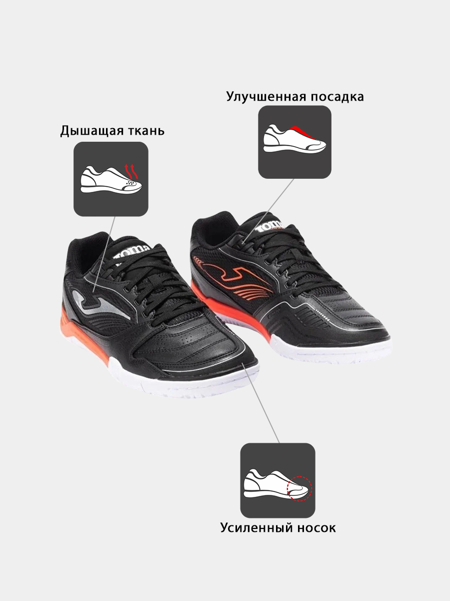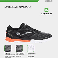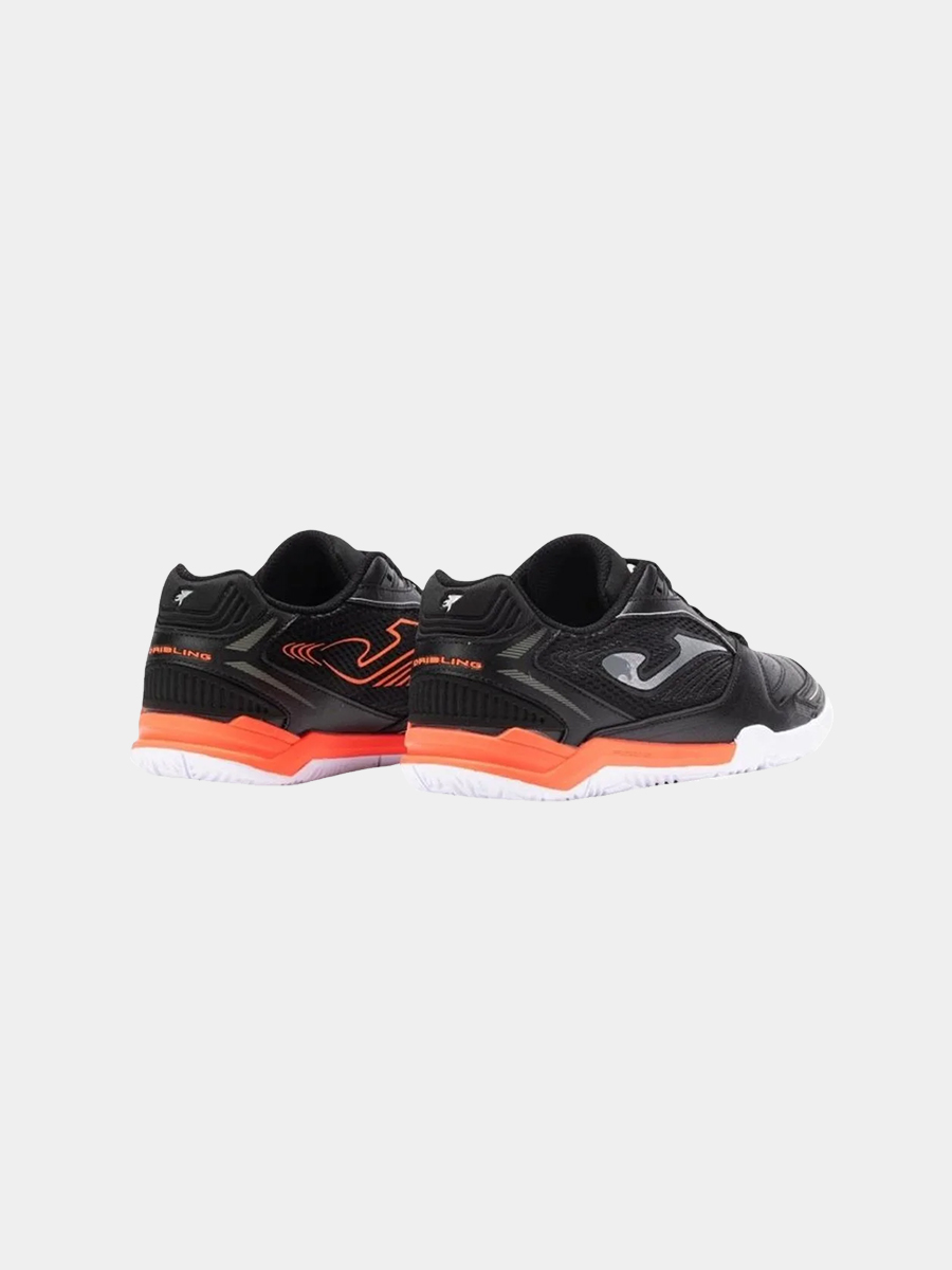Joma Dribling, футзалки, верх которых изготовлен из прочного и гибкого синтетического материала Fibertec (искусственная кожа). Боковые части выполнены из сетчатого текстиля, отвечающего за доступ воздуха. Мягкий текстильный материал применен во внутренней части верха. В области носка в материале также имеются вентиляционные отверстия (система VTS), благодаря которым стопа игрока все время матча или тренировки остается сухой. Усиленная пятка и носок защищают от повреждений. Дополнительный защитный элемент в носочной области помогает наносить сильные удары по мячу. Подошва DRIBLING выполнена из износостойкой резины (технология DURABILITY) , обеспечивающей отличный контракт с игровой поверхностью. Точка разворота ROTATION помогает легко и без риска травмы изменять направление движения на паркете. Линии FLEXO делают футзалки гибкими и способствуют естественному движению стопы по время бега. Технология PERFECT FIT, используемая в зоне шнуровки, обеспечивает оптимальную посадку кроссовок.