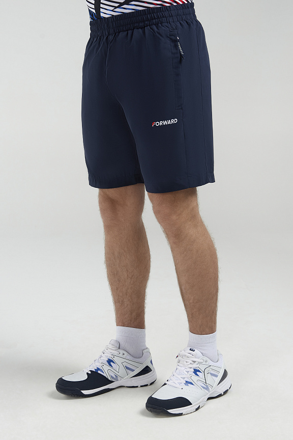 Шорты прямого силуэта без застежки, на подкладке из сетки. Пояс с эластичной тесьмой. Ширина пояса регулируется шнурком. Боковые карманы с тесьмой молнией. По бокам вставки из основного материала. Нанесения: вышивка «FORWARD». Состав: ткань верха 100% полиэстер, подкладка 100% полиэстер, сетка.
