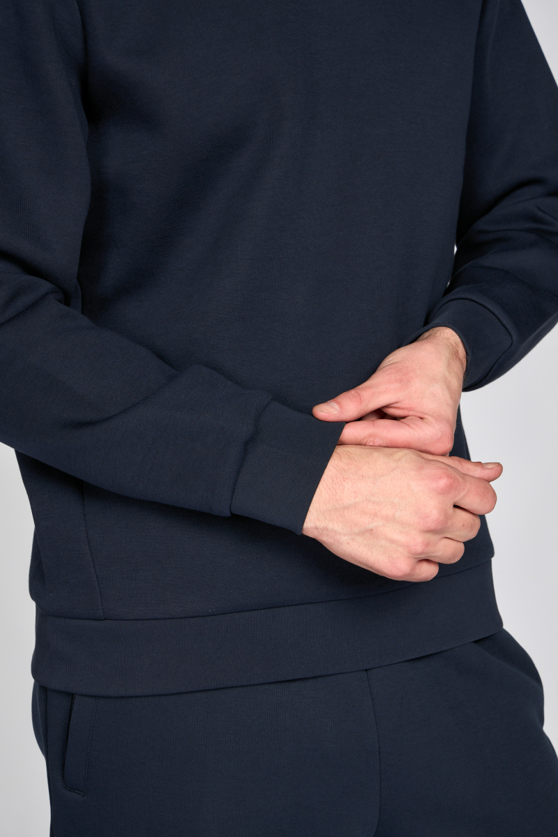 Базовый свитшот стандартного кроя станет отличным дополнением в мужском гардеробе на каждый день. Модель можно использовать в качестве среднего слоя в прохладные дни. Свитшот выполнен из эластичной смеси хлопка и полиэстера с технологией A-SPORTS SHAPE, обеспечивающей свободу движений. Хлопок — натуральный гипоаллергенный материал, который отличается практичностью и гигроскопичностью, а полиэстер — износостойкий и устойчивый к воздействию солнечных лучей, что позволяет сохранять первоначальный цвет изделия долгое время. Плотность трикотажа — 285 г/кв. м. СОСТАВ: 54% хлопок, 46% полиэстер A-SPORTS SHAPE Специальная пряжа и особая трёхмерная структура нити позволяет максимально адаптироваться изделию под фигуру и нагрузки спортсмена, обеспечивая необходимую свободу движений в сочетании с подходящей поддержкой при занятиях спортом.