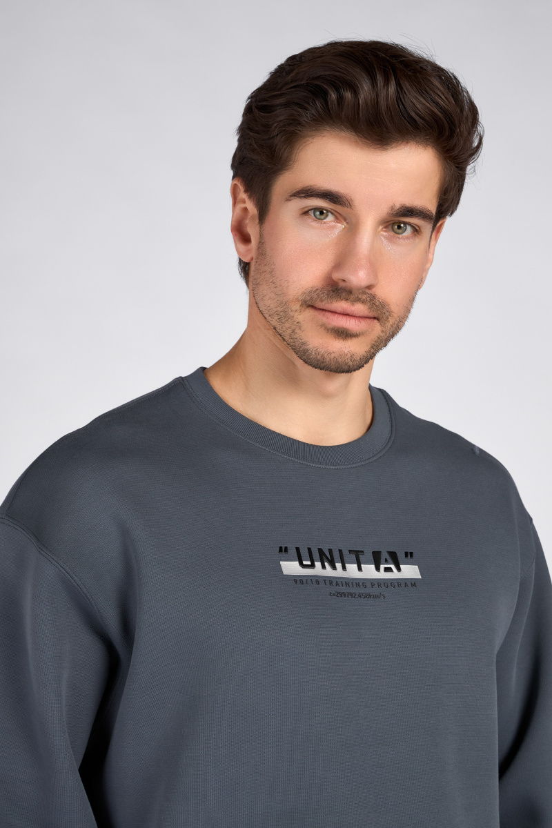Свитшот свободного кроя для мужчин из коллекции UNIT A. Модель подходит как для функциональных тренировок, так и для прогулок на свежем воздухе. Свитшот выполнен из смеси полиэстера, хлопка и спандекса с технологией A-STRETCH SHAPE, благодаря которой изделие становится эластичнее и меньше деформируется. Модель дополнена принтом на груди и на спине. Плотность трикотажа — 320 г/кв. м. Коллекция UNIT A разработана для людей, воспринимающих спорт как средство для расслабления разума и возможности поиска себя. В линейке представлены универсальные модели, которые помогут вам достичь лучших результатов во время ежедневных тренировок. СОСТАВ: 61% полиэстер, 34% хлопок, 5% спандекс A-STRETCH SHAPE Специальная пряжа и особая трёхмерная структура нити обеспечивают максимальную адаптацию изделия к фигуре и нагрузкам спортсмена, обеспечивая необходимую свободу движений и защищая изделие от деформации.