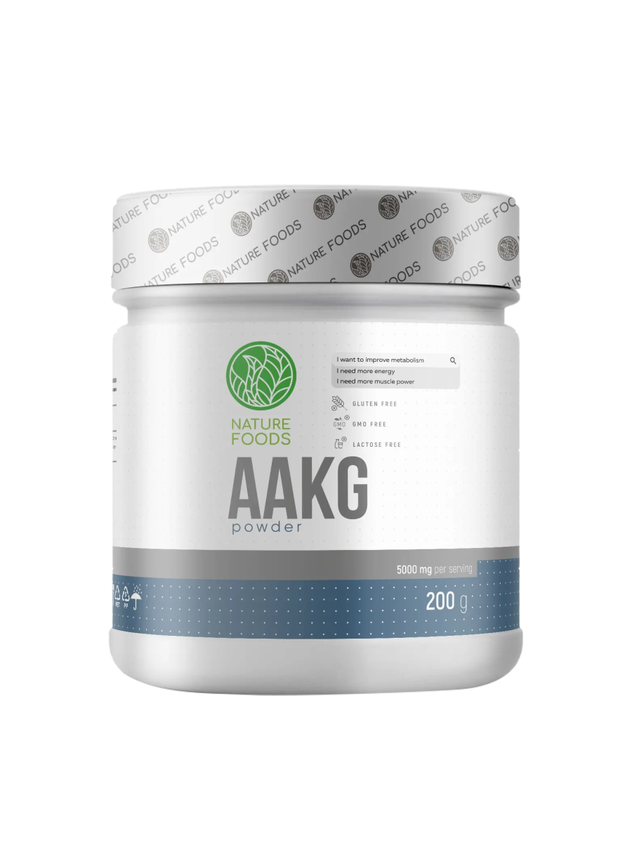 Nature Foods AAKG (аргинин альфа-кетоглутарат) – это специальная форма аминокислоты аргинина. По сравнению со стандартной классической формой аргинина, альфа-кетоглутаровая имеет ряд преимуществ, главные из которых: более высокая биодоступность и пролонгированный эффект. Благодаря высокой биодоступность прием аргинина альфа-кетоглутарата осуществляется в более меньшей дозировке, по сравнению с обычным аргинином, при сохранении того же эффекта. Главный эффект AAKG - стимуляции производства оксида азота в организме, который воздействует на гладкую мускулатуру кровеносных сосудов, расслабляя их. Тем самым усиливается кровоток по организму и кровенаполняемость работающих мышц. Этот эффект обеспечивает активных транспорт кислорода и питательных веществ в мышечную клетку и усиливает вывод продуктов распада из них. Так же AAKG может усиливать секрецию гормона роста, поэтому в некоторых случаях его прием показан перед сном. Размер порции: 6,5 грамм (1 мерная ложка) Количество порций: 30 Состав на одну порцию: L-аргинин альфа-кетоглутарата – 6500 мг Рекомендации по приему: Принимать 6,5 грамм (1 мерная ложка) за 30 минут до тренировки. В не тренировочные дни половину мерной ложки утром и половину - вечером после еды.