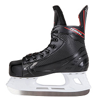 Материал ботинка, выполнен из морозостойких материалов. Удлиненный язычок из фетра и винила. Лезвие из нержавеющей стали, благодаря чему коньки можно хранить практически в любом помещении. Мыс из ударостойкой пластмассы долго сохранит свои свойства. Коньки представлены в размерах с 32 по 45. Особенности модели: Стильный черный цвет Мыс из ударопрочной морозостойкой пластмассы Лезвие конька из нержавеющей стали Удлиненный язычок из фетра и винила Лайнинг - вельвет Ботинок Внутренний ботинок - несъемный Подкладка - синтетика Стелька - съемная Подошва - композит Внешний ботинок - синтетика Застежка - шнурки Лезвие Форма - хоккейное Материал - легированная сталь