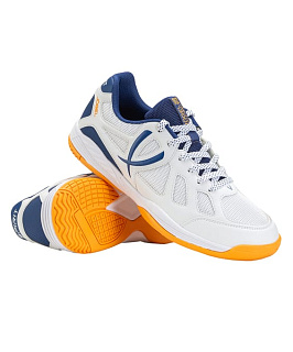 Верх волейбольных кроссовок выполнен из дышащих и прочных материалов, обеспечивая оптимальный микроклимат и защиту стопы. Усиленный носок и пятка обеспечивают прочность и устойчивость на протяжении всей тренировки. Боковые щитки и технологичные вставки гарантируют надежную поддержку при резких движениях.