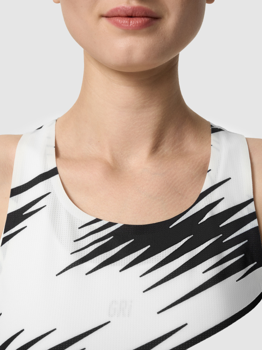Подойдёт для пробежек и соревнований весной, летом и осенью при температуре от +10 до +30°C. Майка сшита из дышащей ткани с влагоотводящей пропиткой QuickDry® для быстрого высыхания. Функциональная серия Про создана для быстрого бега! Григорий Лазарев, основатель бренда GRI: «Майка сделана из двух материалов: нашей классической ткани GRI и облегчённой сетки. В этом году мы сделали нанесение в виде молнии на груди, чтобы отразить идею быстрого бега. Принты получились заметными, на соревнованиях будут выглядеть просто супер! Мне нравится и черно-белый, и огненный». Детали • Передняя и задняя панели из разных тканей. • Лёгкая, дышащая, быстросохнущая ткань. • Светоотражающий принт в виде молнии на груди. • Светоотражающие ленты по бокам. • Клееные швы. Состав Основа: 85% полиэстер, 15% спандекс. Вставки: 94% полиэстер, 6% спандекс. Ткани и технологии Влагоотводящая пропитка QuickDry® для быстрого высыхания ткани. Температурный режим От +10°C до +30°C. Рекомендации по уходу • Машинная стирка 30°C. • Отжим на 600 оборотах. • Вертикальная сушка. • Сушка в машине запрещена. • Отбеливание запрещено. • Глажение запрещено. • Отпаривание не рекомендуется.