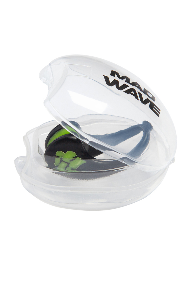 Зажим для носа - аксессуар для плавания, предотвращающий попадание воды в нос пловца. Пластиковый зажим Ergo Nose Clip полностью защищает от воды, не натирая кожу и не вызывая дискомфорта. На внутренней части зажима расположены вставки из мягкой гипоаллергенной термопластичной резины, обеспечивающие дополнительную фиксацию и комфорт во время плавания. Зажим имеет эргономичную форму и лаконичный дизайн с логотипом Mad Wave на внешней стороне. В комплект входит прозрачный пластиковый футляр для удобного хранения и транспортировки аксессуара. ОСОБЕННОСТИ: Надежная защита носа от попадания воды - носовой зажим позволяет надежно защитить ваш нос от попадания в него воды при плавании в бассейне и на отдыхе; Гипоаллергенный материал - изделие не вызывает аллергических реакций; Удобное хранение и гигиеничность - специальный пластиковый кейс позволит безопасно хранить беруши, а также изолировать их от других вещей в сумке или рюкзаке; Эргономичная форма - повышенный комфорт и надежность в использовании. Состав нейлон, термопластичная резина