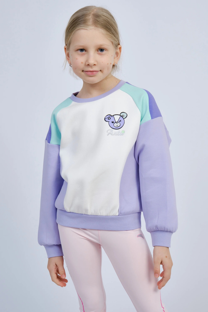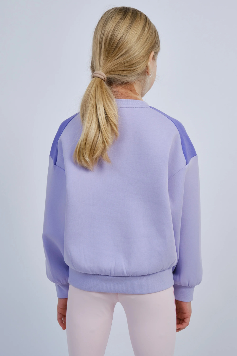Детский свитшот из танцевальной коллекции позволит создать яркий образ в спортивном стиле. Модель выполнена из смесового материала на основе мягкого и комфортного хлопка. Свободный крой Relax Fit не сковывает движений. СОСТАВ: 81%Хлопок13%Полиэстер6%Спандекс