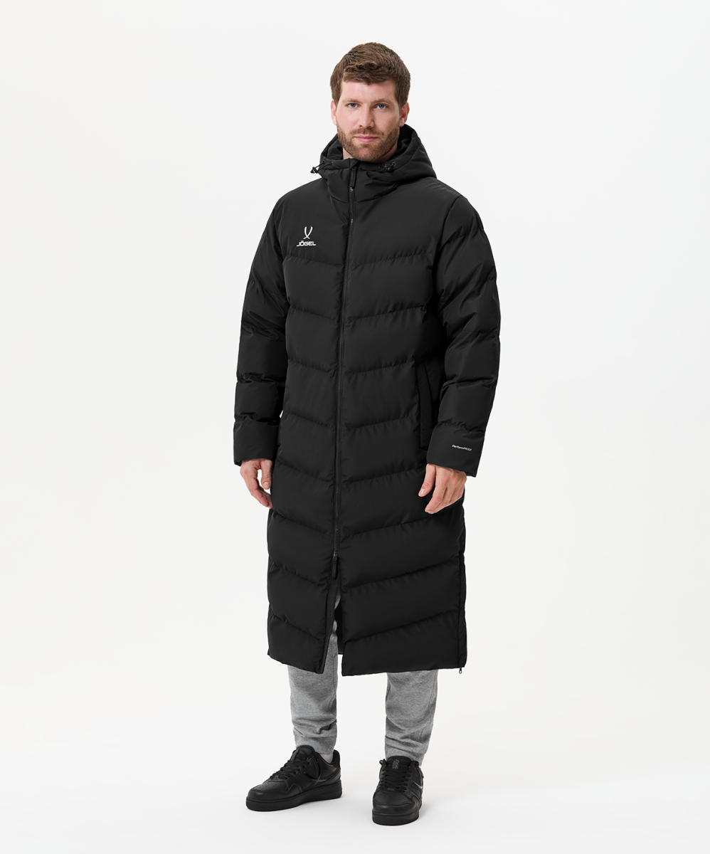 Утепленное пальто прямого силуэта изготовлено из ткани с влагоотталкивающей пропиткой. Материал имеет высокую плотность переплетения, что не только защищает от промокания, но и обеспечивает отличную износостойкость. В данной модели продумано все, чтобы чувствовать себя комфортно в непогоду. Защититься от ветра поможет затягивающийся капюшон. Внизу изделия предусмотрены боковые молнии, которые можно расстегнуть для вентиляции. Центральная передняя молния дополнена внутренней ветрозащитной планкой. Два боковых кармана на молнии и внутренний удобный карман для различных мелочей помогают разместить необходимые аксессуары. Вышивка JOGEL добавляет индивидуальности. Принт PerFormProof на рукаве. PerFormPROOF – технология пропитки материалов JOGEL, обеспечивающая спортсменам защиту от дождя и ветра во время плохих погодных условий.