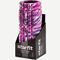 Ролик массажный Starfit FA-508, EVA/PP, низкая жесткость, 33x14 cм, розовый камуфляж/черный