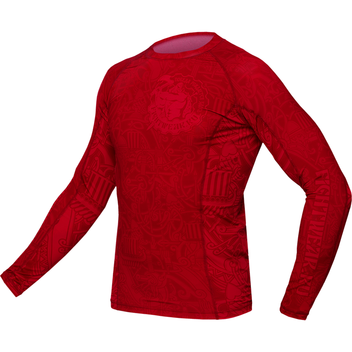 Рашгард Fightwear Red. Сделано с любовью для наших друзей, то есть - для вас. При разработке этого рашгарда мы ставили перед собой три задачи: - Сделать его качественным. - Доступным по цене. - Сделать его красивым, но при этом достаточно строгими по дизайну. И мы достигли цели! Помогает вашему телу удерживать оптимальную температуру в течении всей тренировки даже при небольших перерывах. Длинный рукав уберегает кожу рук при работе в партере от травмирования об жесткие маты и татами. Все краски сублимированны в ткань, не сотрутся и не потускнеют со временем! Качественные плоские швы не натирают кожу. Ткань очень приятная на ощупь. Очень прочная но при этом дышащая ткань, отлично сидящая на теле. Рашгард отлично подойдет для тренировок такими видами спорта как: кроссфит, мма, грэпплинг, бокс, муай тай, работа с железом и т.д.. Уход: машинная стирка в холодной воде, деликатный отжим, не отбеливать. Состав: 92% полиэстер, 8% спандекс. Артикул: figrash08 Страна производитель: Россия