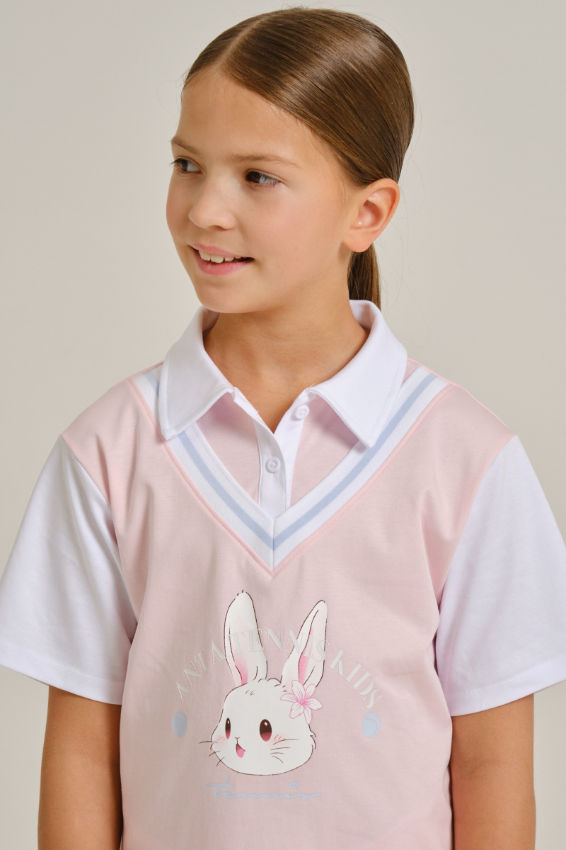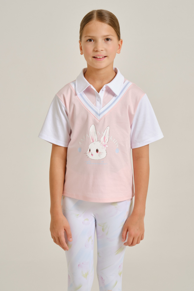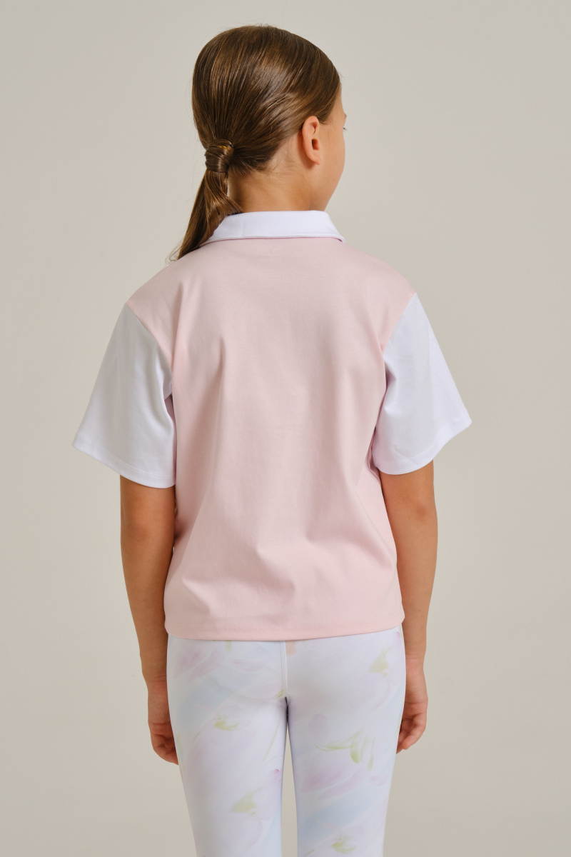 Футболка-поло для девочек отличается ярким образом и выполнена в классическом стиле. Она идеально подойдет как для тренировок в зале и на улице, так и для повседневной носки. Футболка имеет свободный крой и выполнена из 100% хлопка, что обеспечивает комфорт для ребенка.