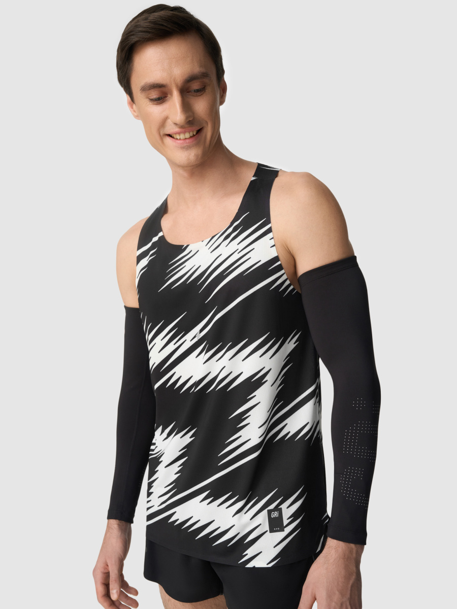 Подойдёт для пробежек и соревнований весной, летом и осенью при температуре от +10 до +30°C. Майка сшита из дышащей ткани с влагоотводящей пропиткой QuickDry® для быстрого высыхания. Функциональная серия Про создана для быстрого бега! Григорий Лазарев, основатель бренда GRI: «Майка сделана из двух материалов: нашей классической ткани GRI и облегчённой сетки. В этом году мы сделали нанесение в виде молнии на груди, чтобы отразить идею быстрого бега. Принты получились заметными, на соревнованиях будут выглядеть просто супер! Мне нравится и черно-белый, и огненный». Детали • Передняя и задняя панели из разных тканей. • Лёгкая, дышащая, быстросохнущая ткань. • Светоотражающий принт в виде молнии на груди. • Светоотражающие ленты по бокам. • Клееные швы. Состав Основа: 85% полиэстер, 15% спандекс. Вставки: 94% полиэстер, 6% спандекс. Ткани и технологии • Влагоотводящая пропитка QuickDry® для быстрого высыхания ткани. Температурный режим От +10°C до +30°C. Рекомендации по уходу • Машинная стирка 30°C. • Отжим на 600 оборотах. • Вертикальная сушка. • Сушка в машине запрещена. • Отбеливание запрещено. • Глажение запрещено. • Отпаривание не рекомендуется.