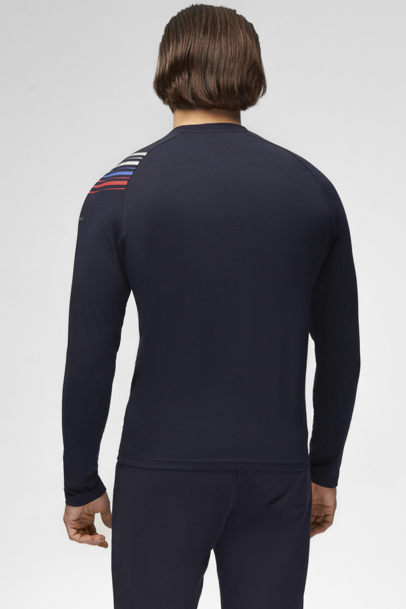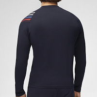 Футболка прямого силуэта с О-образным вырезом горловины. Обтачка горловины выполнена из трикотажного полотна ластик различной плотности. Рукав покроя реглан. Нанесения: вышивка «FORWARD» вышивка «F» принт «Трек» принт «NATIONAL TEAM» принт «Мы вместе. Спорт» Состав: 95% хлопок, 5% эластан, 180г/м2.