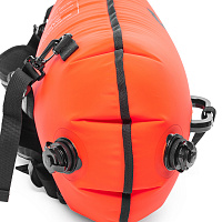 Надувной буй DRY BAG для триатлона и плавания на открытой воде объемом 28 литров до надувания. Яркий цвет буя улучшает видимость пловца на поверхности воды, обеспечивая его безопасность во время тренировок и соревнований. В случае необходимости буй также может служить опорой для отдыха. Буй представляет собой герметичный мешок с плотно закрывающимся на фиксатор верхом, внутри которого есть пространство для личных вещей и энергетических напитков. Легко надувается посредством двух воздушных клапанов. Буй DRY BAG имеет две независимые надувные камеры, что повышает его надежность. Благодаря длинному ремню, буй не ограничивает движений спортсмена в ходе заплыва. Удобные регулируемые лямки позволяют носить буй как рюкзак. Непосредственно перед заплывом их можно быстро отстегнуть и спрятать внутрь мешка. В карабин буя встроен свисток, позволяющий пловцу в случае необходимости подавать звуковые сигналы. Состав пвх 100%