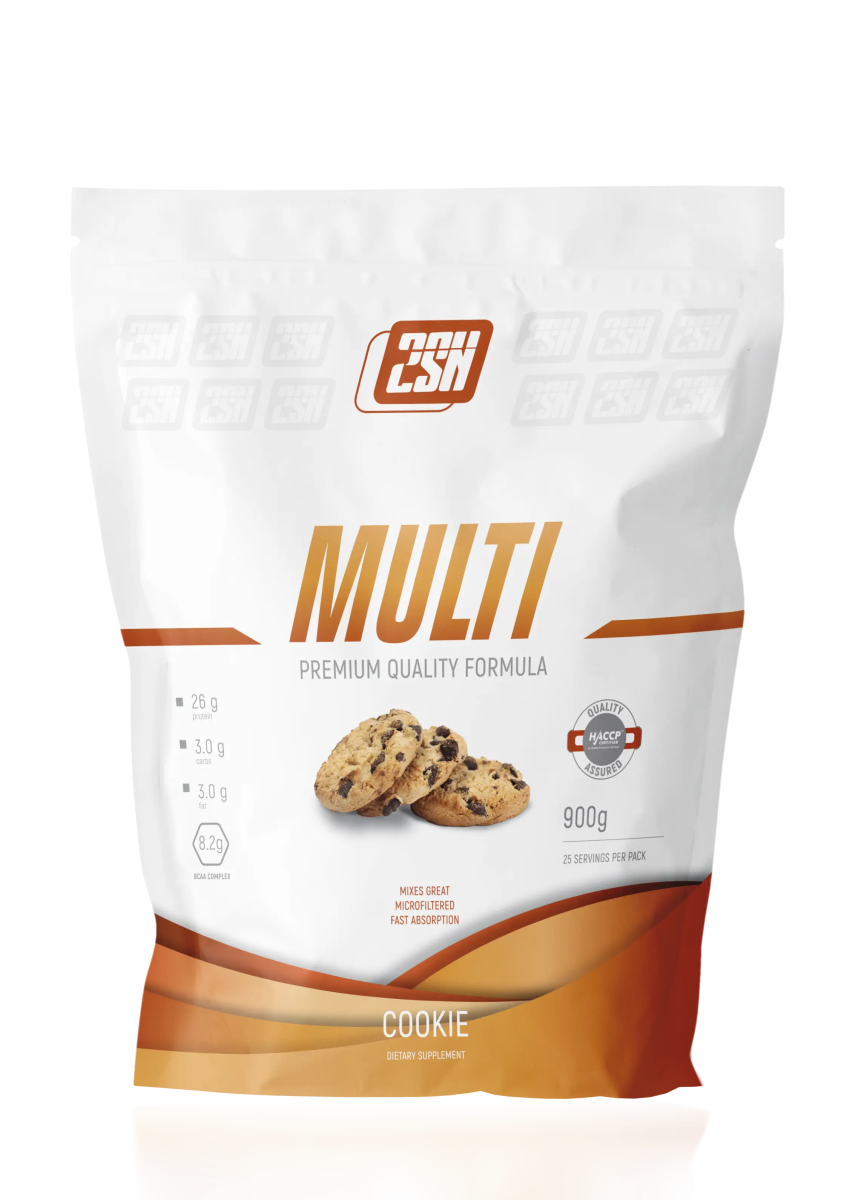2SN Multi Protein – это комплексный (мультикомпонентный) протеин, включающий в свой состав сывороточный концентрат, казеин и яичный альбумин. Комплексный протеин имеет ряд преимуществ – он включает белки, которые имеют разную скорость расщепления и усвоения, а значит обеспечивает непрерывное поступление аминокислот организму в течении дня. Наличие разных источников белка позволяет получить максимально разнообразный аминокислотный профиль, что положительно сказывается на сбалансировании рациона и восстановлении организма. 2SN Multi Protein идеально подходят для набора сухой мышечной массы или качественного поддержания набранного веса. Так же его можно использовать для приема перед сном, так как в состав входят среднеусвояемые и долгоусвояемые белки, которые медленно расщепляются и обеспечивают организм аминокислотами в течении всей ночи. 2SN Multi Protein дополнительно содержит в своём составе незаменимые аминокислоты BCAA, которые служат главным строительным материалом для мышечной ткани, восстанавливая ее и защищая от катаболизма. Размер порции: 36 грамм (1 мерная ложка) Количество порций: 25 Состав на одну порцию: Калории – 140 ккал Жиры – 3,0 г Углеводы – 3,0 г Белок – 27 г BCAA, в том числе – 8,5 г - L-лейцин – 2,4 г - L-изолейцин – 3,8 г - L-валин – 2,2 г Ингредиенты: концентрат сывороточного белка, концентрат молочного белка (мицеллярный казеин), яичный белок, сукралоза Рекомендации по приему: Смешать одну порцию (1 мерная ложка) с 300-500 мл воды или молока (или его аналогом). Принимать 1-2 порции в день между приемами пищи, после тренировки или перед сном, в зависимости от задач.