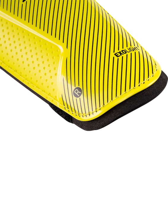 Сверхлегкие щитки с двойным ремешком для надежной фиксации на ноге. В щитках реализована технология ExoLight, обеспечивающая максимальную легкость. Анатомическая форма каркаса обеспечивает эргономичность и комфортные ощущения. Материал верха: полипропилен Материал подкладки: этиленвинилацетат Размерный ряд: XS, S, M, L Основной цвет: желтый Дополнительный цвет: черный Тип фиксации: пара эластичных ремешков с липучками Назначение: футбол Тип упаковки: фирменный пакет с европодвесом и с замком Zip-Lock Производство: КНР