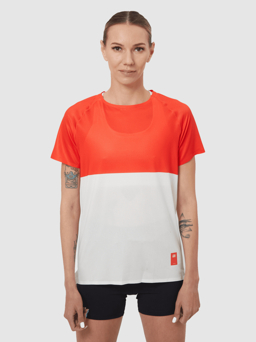 Четвёртая версия женской футболки Маяк — свежий взгляд на красно-белую классику GRI. Для пробежек в тёплую погоду весной, летом и осенью. Футболка сшита из лёгкой дышащей ткани. В зависимости от погоды её можно носить без верхнего слоя или надевать под куртку. Григорий Лазарев, основатель бренда GRI: «Новое прочтение футболки Маяк. Очень свежее, я считаю. Эта версия сильно отличается от предыдущих: она получилась более современная и необычная. Маяк впервые не полосатый! Интересно, как это оценят наши покупатели». Состав 85% полиэстер, 15% спандекс.