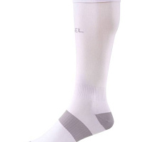 Футбольные гетры с хлопковым носком обеспечивают надёжное сцепление с подошвой. Динамическая поддержка свода стопы и дополнительная амортизация в ключевых зонах обеспечивают плотную и удобную посадку на ноге. Улучшенные эргономические свойства резинок для максимально комфортной игры. В структуру ткани вплетены специальные волокна, которые имеют различную толщину, что обеспечивает впитывание и отвод пота на наружный слой, где происходит его испарение. Зональная амортизация позволяет снизить давление. На контрастной полоске расположен логотип бренда. Характеристики: Состав: полиэстер 62%, хлопок 20%, полиамид 10%, эластан 8% Цвет: белый/серый Производство: Россия