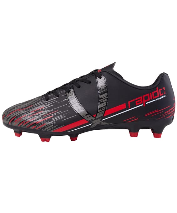Обновленные цвета хорошо всем известной модели Rapido из линейки neo.Sprint. Многошиповые бутсы отлично подходят для игры на искусственных и натуральных поверхностях. Они стали еще практичнее, комфортнее и технологичнее. В Rapido используется технология Speedtech для максимальной скорости на поле. Анатомическая форма новой колодки обеспечивает еще более правильное положение стопы. Мягкая стелька из материала ЭВА распределяет нагрузку и дает необходимый комфорт. Для дополнительного вентилирования в язычке сделаны специальные отверстия. Конфигурация подошвы из 11-ти шипов обеспечивает комфортное сцепление с поверхностью и позволяет развивать максимальную взрывную скорость. В производстве обуви Jögel используются только качественные материалы, обувь легко моется и не требует дополнительного ухода. Технология Speedtech - соединение облегченных материалов и динамичной конструкции бутсы, позволяющее футболисту раскрыть свои скоростные способности. Преимущества: Многошиповые бутсы; Технология Speedtech для максимальной скорости на поле; Анатомическая колодка; Мягкая стелька из ЭВА. Характеристики: Материал верха: полиуретан Материал подкладки обуви: текстиль Материал подошвы обуви: термополиуретан Материал стельки: этиленвинилацетат, текстиль Полнота обуви: Е Основной цвет: черный Дополнительные цвета: серый/красный Вид застежки: шнурки Тип подошвы: шипованная Назначение обуви: спорт, футбол Рекомендованные покрытия: искусственный газон, тюрф, гравийные покрытия Комплектация: бутсы, коробка Вес пары, г: 750 г Тип упаковки: коробка со стикером Страна производства: Китай
