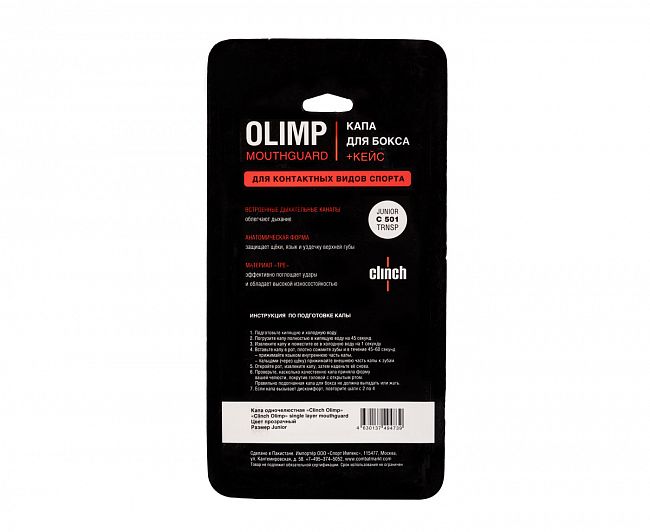 КАПА ОДНОЧЕЛЮСТНАЯ CLINCH OLIMP SINGLE LAYER MOUTHGUARD ПРОЗРАЧНАЯ C501