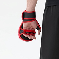 Перчатки INSANE HYBRID – специализированные гибридные перчатки для ММА. Их конструкция разработана с учетом особенностей данного вида спорта: она позволяет бойцу оставаться под надежной защитой и применять как ударные, так и борцовские техники. Перчатки имеют круглую изогнутую форму, которая естественным образом полностью повторяет форму суставов пальцев и кулака, снижая утомляемость и риск получения травм. HYBRID комфортно и плотно облегают руку, а открытая ладонь позволяет проводить захваты, броски и другие приемы как в стойке, так и в партере. Подушка средней жесткости с наполнителем из многослойной плотной пены отлично поглощает удары и минимизирует их вредное воздействие на суставы. Толщина наполнителя позволяет отрабатывать удары на снарядах. Тыльная сторона ладони и отделение для большого пальца имеют дополнительную защиту, которая не сковывает движений. За надежную фиксацию на руке отвечает длинная манжета на липучке – полтора оборота вокруг запястья. Перчатки INSANE HYBRID комфортны и долговечны в использовании. Прочная подкладка быстро сохнет и хорошо отводит влагу, надежная прошивка дополнительно увеличивает срок службы изделия. Преимущества: Гибридные перчатки для ММА; Круглая изогнутая форма; Плотно облегают руку; Открытая ладонь; Дополнительная защита большого пальца и тыльной стороны ладони; Надежная и быстрая фиксация длинной липучкой; Прочная прошивка; Подкладка хорошо отводит влагу и быстро сохнет. Характеристики: Цвет: красный Mатериал внешний: полиуретан Материал набивки: пенополиуретан Размеры: S, M, L Тип упаковки: сумка переноска на молнии Производство: Китай