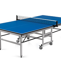 Стол для настольного тенниса с усиленной рамой, двойными раскосами, идеально фиксирующими стол во время игры и тренировок. Толщина столешницы обеспечивает отличный отскок мяча, что позволяет использовать стол для тренировочных занятий в спортивных клубах. Благодаря единой раме стол просто складывается и легко транспортируется. Цвет: комбинированный синий, серый. Игровое поле: специальное ЛДСП 22 мм с меламиновым покрытием (пр-во: Россия-Германия). Сетка: в комплект не входит. Кант: металлический 40х25 мм по периметру игрового поля. Рама: стальной профиль 40х40 мм и 40х25 мм. Раскосы металические с фиксаторами надежно удерживают теннисный стол. Металлические детали имеют полимерное покрытие. Боковые опоры регулируются по высоте. Транспортировочная система: четыре обрезиненных ролика диаметром 100 мм, одна пара со стопором. Размер (международный стандарт): длина 274 см, ширина 152,5 см, высота 76 см. Размер в сложенном виде: длина 152,5 см, ширина 60 см, высота 187 см. Размер упаковки: 2 шт. по длине 157 см, ширине 10 см, высоте 141 см. Стол поставляется частично в собранном виде. Вес стола: 86 кг. Вес стола в упаковке: 56 (1/2 стола) кг. Артикул: 60-720 Обратите внимание: Элементы фирменного дизайна данной продукции могут незначительно отличаться от изображения. Производитель оставляет за собой право вносить изменения во внешний вид изделия, что не влечет за собой ухудшения характеристик товара.