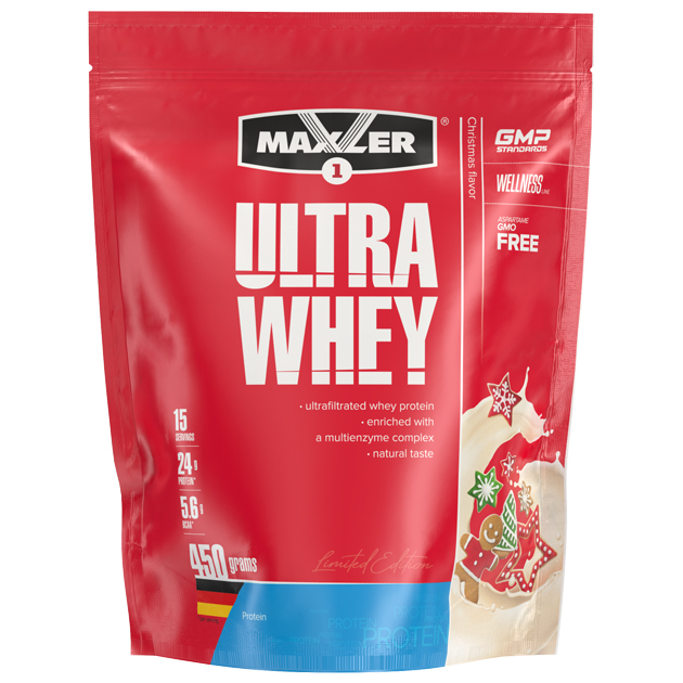 После тяжёлых физических нагрузок мышцы нуждаются в восстановлении и поддержке. Для достижения данной цели необходим белок, поскольку он выполняет функцию основных строительных блоков человеческого организма. Протеин способствует увеличению роста мышц и улучшению восстановления мышечной ткани после интенсивных тренировок. Ultra Whey – это 80%ый сывороточный протеин высочайшего качества, который произведён из лучшего молока коров на свободном выпасе. Продукт отличается крайне низким содержанием жира и углеводов. Ultra Whey отлично смешивается, легко усваивается благодаря мультиэнзимному комплексу DigeZyme® и обладает удивительным натуральным вкусом. Ultra Whey замечательно подойдёт как для спортсменов и бодибилдеров, так и для активных людей, нуждающихся в натуральном белке высокого качества. Рекомендации по применению: смешайте 1 порцию (30 г) с 250 мл воды или молока.