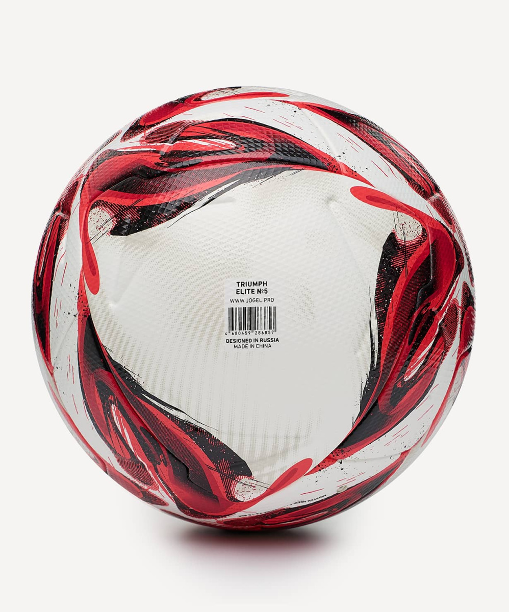 Jögel Triumph Elite №5 - это профессиональный футбольный мяч для соревнований самого высокого уровня, который соответствует всем требованиям FIFA. В данной модели были учтены все пожелания футболистов и также применен наш многолетний опыт в создании мячей. Выполнен по технологии термосклеивания THB Technology, благодаря чему обладает идеально круглой формой, герметичен и не пропускает влагу внутрь, а давление в мяче распределяется равномерно. Текстура поверхности материла разработана по технологии Grip Skin - для максимального контроля в любую погоду. Сочетает в себе оригинальные технические решения в виде 8 панельной конструкции мяча и красочный дизайн символизирующий страсть и любовь к футболу. Снаряд экологичен, в подкладке мяча используется переработанный материал, который получается из 4 пластиковых полулитровых бутылок. Рекомендован для тренировок и соревнований профессиональных команд. Специально разработанная конструкция мяча из 8 оригинальных панелей. Официальный размер и вес FIFA. Внимание: Мяч поставляется с завода-изготовителя в накачанном виде. Не рекомендуется полностью спускать данные мячи, чтобы не нарушить целостность панелей. Необычная модель мяча с ярким дизайном, подготовленная специально для зимнего сезона. Характеристики: Рекомендованные покрытия: натуральный газон, синтетическая трава, резина, гаревые поля, паркет Материал поверхности: 1.1 мм синтетическая кожа (полиуретан) + 3.5 мм подкладочный слой из пены Материал камеры: бутил Тип соединения панелей: термосшивка Количество подкладочных слоев: 1 Количество панелей: 8 Размер: 5 Вес, г: 420-445 Длина окружности, см: 68-70 Рекомендованное давление: 0.8-1.0 бар Мяч поставляется: накаченный Основной цвет: белый Дополнительный цвет: красный, черный Производство: КНР