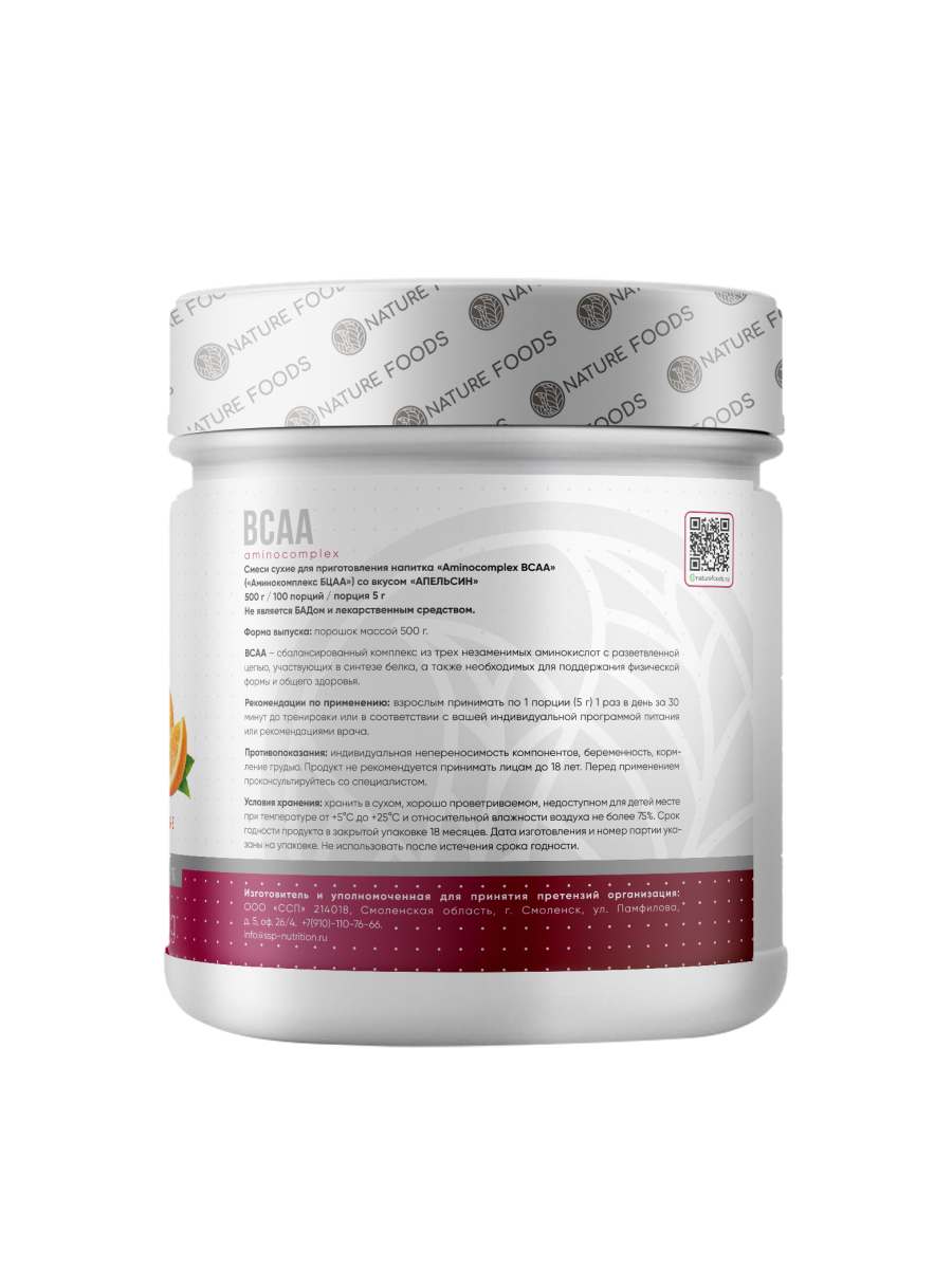 Nature Foods BCAA – это аминокислотный комплекс, включающий три наиболее важных для мышц аминокислоты – лейцин, изолейцин и валин. Эти аминокислоты выполняют три главных для организма функции: восстановление мышиной ткани, защита мышц от катаболизма и поддержание уровня энергии во время нагрузки. При наборе мышечной массы Nature Foods BCAA стимулирует процессы анаболизма в мышцах и поддерживают азотистый баланс, что необходимо для развития силы. При дефиците калорий, например в процесс жиросжигающий диеты, эти аминокислоты обезопасят мышечную ткань от разрушения и уменьшения, сохранив набранные объемы. Важно, что во время тренировки далеко не всегда можно использовать разные углеводные напитки для поддержания энергии, так как на диете зачастую ограничен прием сахаров. BCAA как ни одна другая добавка подойдет на эту роль, поддерживая энергию в работающих мышцах и не добавляя лишнюю калорийность. Размер порции: 5 грамм (1 мерная ложка) Количество порций: 100 Состав на одну порцию: L-лейцин 2270 мг L-изолейцин 1130 мг L-валин 1130 мг Рекомендации по приему: Смешать одну порцию (1 мерная ложка) с 300-700 мл воды. Принимать 1-2 порции в день между приемами пищи, во время или после тренировки, в зависимости от задач.
