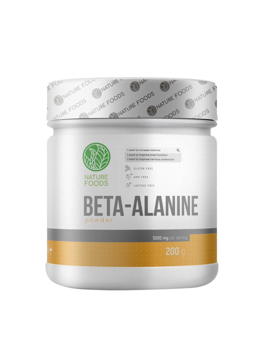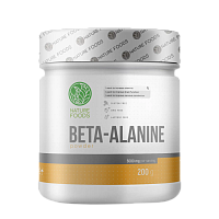 Nature Foods Beta Alanine – это особая форма аминокислоты аланина. Вместе с гистидином образует в мышцах специальный пептид – карнозин. Бета-аланин в составе карнозина выступает в виде буфера молочной кислоты. Он блокирует ее чрезмерное образование, тем самым снижая порог закисляемости в мышцах. При этом увеличивается время до отказа работающей мышцы, повышается работоспособность и выносливость. Прием бета-аланина особенно актуален в тех видах физической активности, где используется средняя интенсивность, в анаэробном режиме с большим образованием молочной кислоты. Идеально подходит для видов спорта со скоростно-силовой выносливостью. Бета-аланин хорошо сочетается с креатином, поэтому одновременный микс этих добавок способен существенно поднять результативность и эффективность тренинга. Размер порции: 5 грамм (1 мерная ложка) Количество порций: 40 Состав на одну порцию: Бета-аланин – 5000 мг Рекомендации по приему: Смешать одну порцию (1 мерная ложка) с 200-300 мл воды и принять за 20-30 минут до тренировки.
