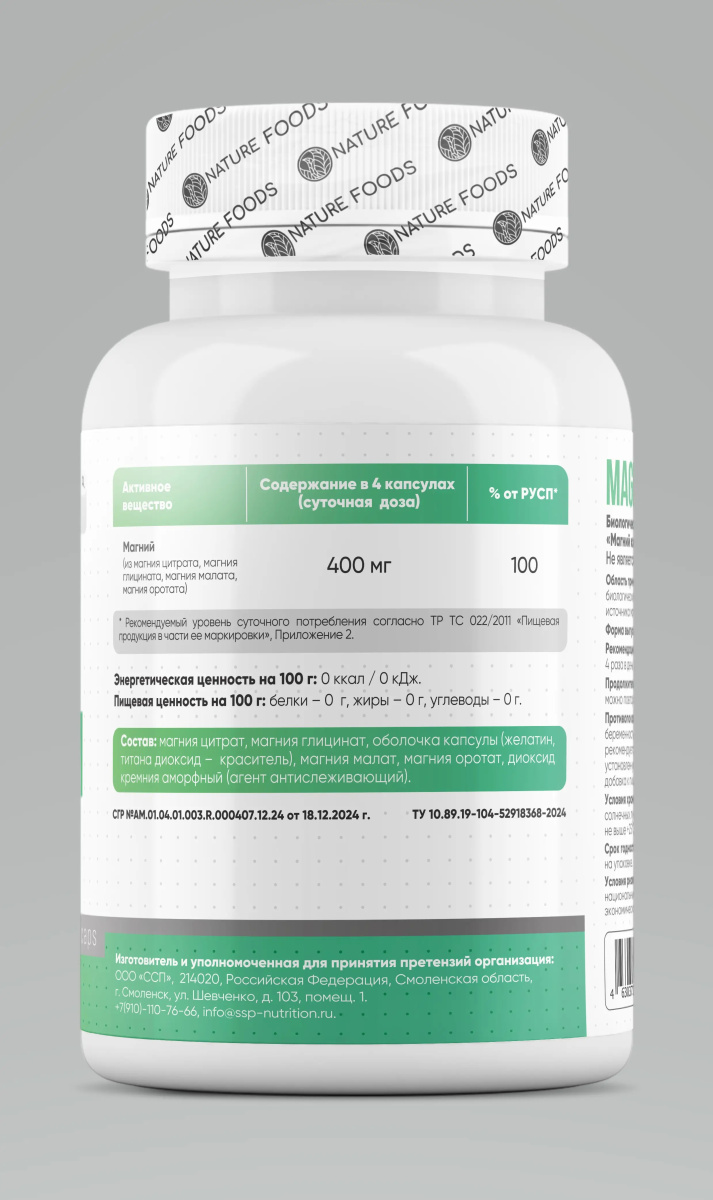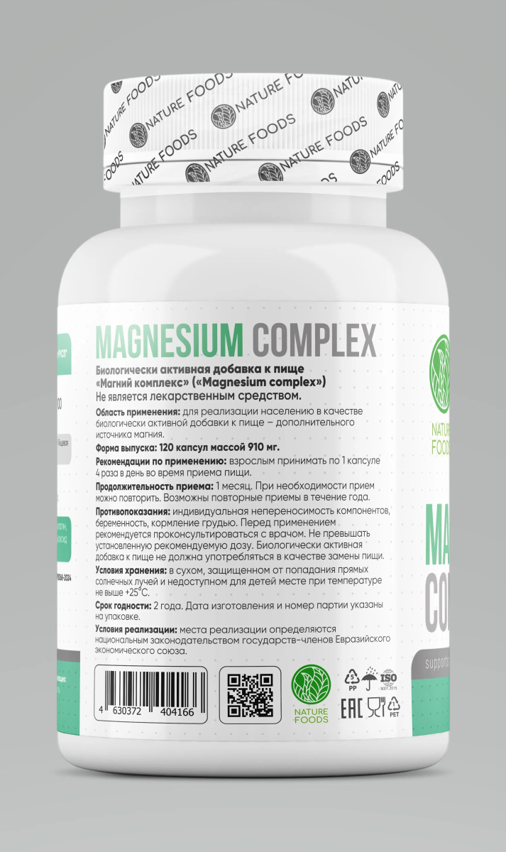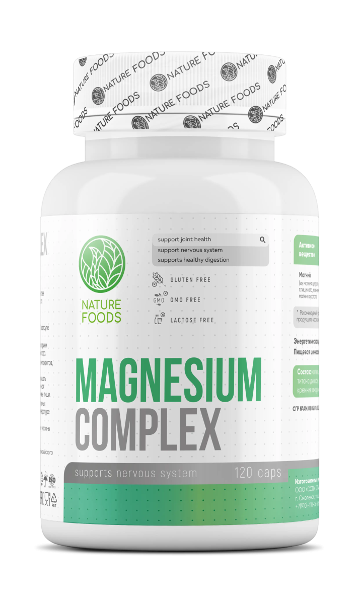 Nature Foods Magnesium Complex 120 капсул — это эффективный комплекс трёх форм магния для полноценной поддержки нервной системы, сердечно-сосудистого здоровья и качественного сна. Магний в разных формах усваивается лучше и действует шире, обеспечивая максимальную эффективность. Преимущества Nature Foods Magnesium Complex: Поддержка спокойствия, концентрации и стрессоустойчивости Улучшение качества сна и расслабления мышц Содействие работе сердца и нормализации давления Участие в энергетическом обмене и защите клеток Оптимальная дозировка — на каждый день 120 капсул — удобный формат для полноценного курса Как принимать: принимать по 1-й капсуле 4 раза в день во время пищи Nature Foods Magnesium Complex — это забота о нервной системе, сне, сердце и общем самочувствии в каждой капсуле.