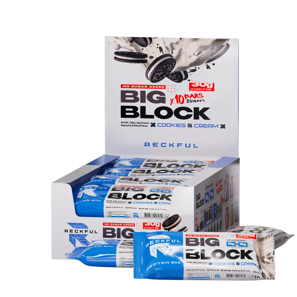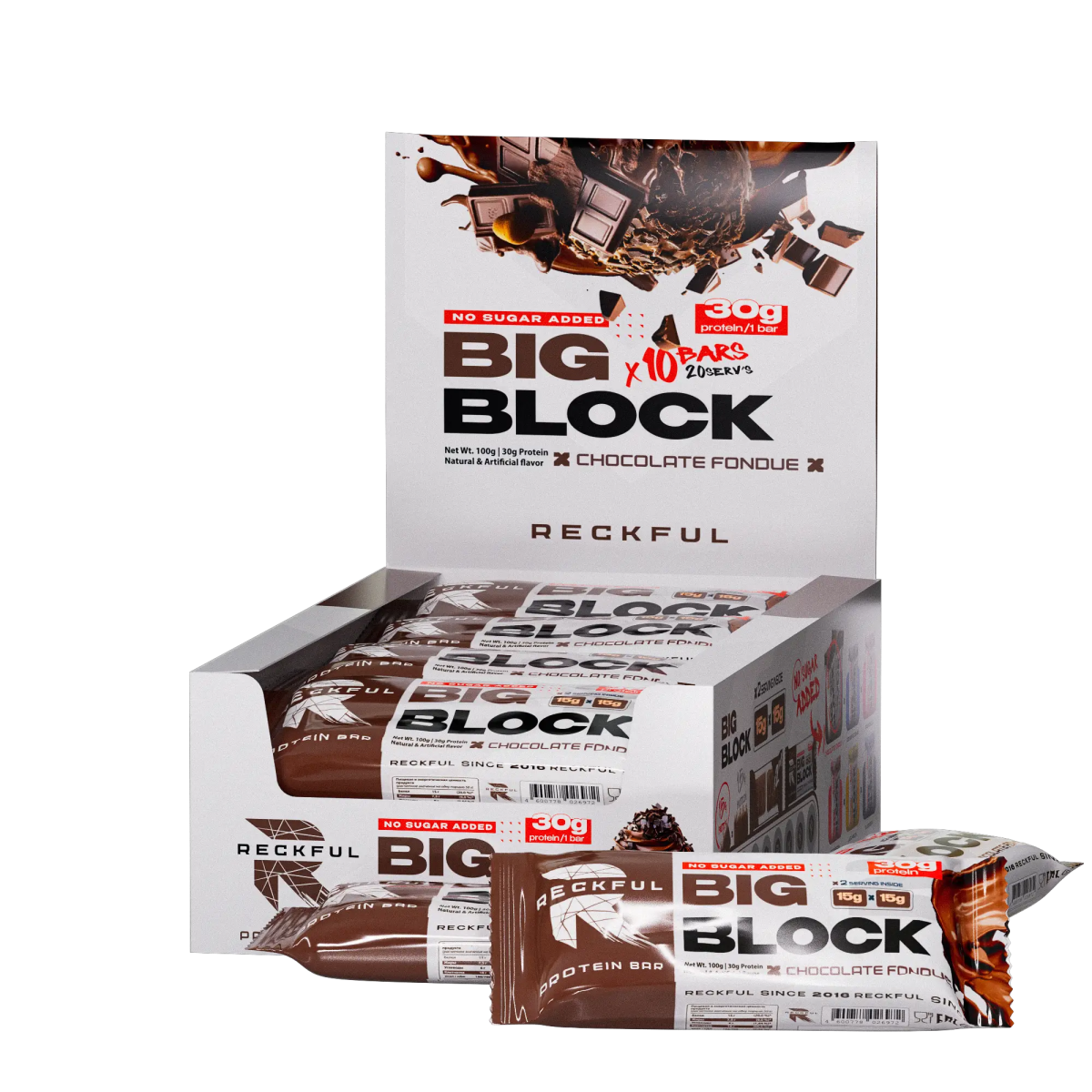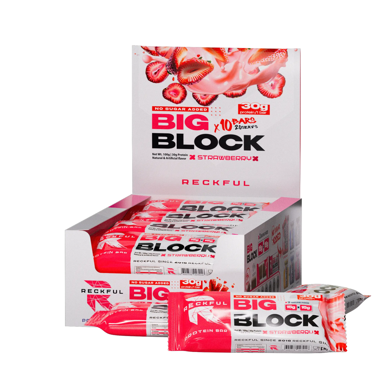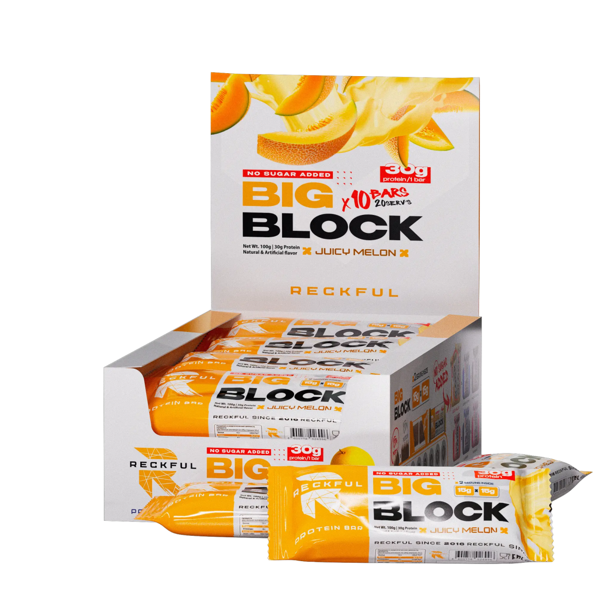RECKFUL® PROTEIN BAR – BIG BLOCK 100 г — это не просто батончик. Это вызов скучным перекусам, пощечина голоду и насмешка над сладостями из супермаркета. Тут не про «немножко белка», тут – BIG BLOCK, настоящий протеин-удар в 100 г чистого удовольствия. Каждый вкус — как гастрономическая глава нового блокбастера: Дыня в белой глазури — освежающая и нежная, будто лето в Эмиратах, замороженное в глазури. Клубника со сливками в молочной глазури — как роман с продолжением: сначала клубничный поцелуй, потом — сливочное послевкусие. Малина в белой глазури — яркая, сочная, чуть дерзкая. Кисло-сладкая классика на новый лад. Печенье-крем в молочной глазури — будто Oreo ушли в спортзал и вернулись в форме. Черника в белой глазури — мягкий ягодный вайб с прохладной сливочной волной. Шоколадный фондан в молочной глазури — насыщенно, густо, почти запрещённо. Как десерт, который не должен быть таким полезным. А теперь — цифры, которые внушают доверие: На порцию 50 (половинка батончика 1 блок) г: Белки — 15 г Жиры — 7 г Углеводы — 6 г Клетчатка — 18 г Всего 183 ккал