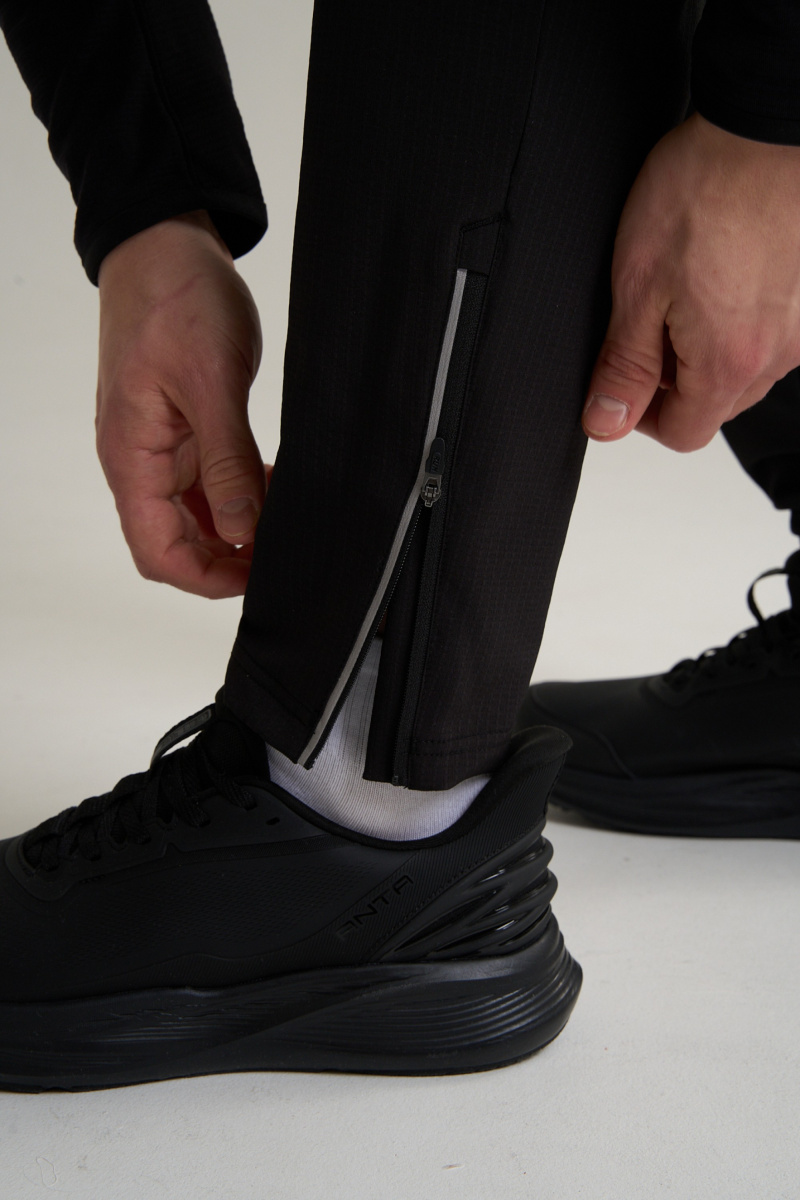 Мужские беговые брюки со стандартной посадкой из коллекции ANTA RUNNING – ваш выбор для регулярных тренировок, в котором ключевую роль играют легкость, защита от непогоды и свобода движений. Брюки выполнены из легкого и прочного текстильного полотна, состоящего из полиамида (90%) и эластана (10%). Полиамид обеспечивает исключительную износостойкость, ветрозащиту и быстрое высыхание, а значительная доля эластана придает материалу эластичность, что позволяет брюкам идеально следовать за каждым движением, не сковывая беговой шаг. Технология A-WARM способствует сохранению естественного тепла тела в прохладную погоду, создавая комфортный микроклимат. Технология A-COOL, активируясь во время повышенной активности, помогает эффективно отводить излишки тепла и влаги, предотвращая перегрев. Конструкция брюк адаптирована для беговых нагрузок. Дополнительные швы в зоне коленей с обратной стороны повышают прочность и долговечность. Эластичный пояс с внутренним регулировочным шнурком обеспечивает индивидуально настраиваемую посадку на талии. Два боковых кармана на молнии надежно сохранят ключи, карту или гель даже при высоком темпе бега. Молнии внизу штанин упрощают надевание, создают более обтекаемый силуэт и улучшают безопасность, работая как световозвращающий элемент. Дизайн модели воплощает в себе урбанистическую эстетику и функциональный минимализм, вдохновленные динамичным духом Милана. Чистый черный цвет и безупречные линии создают стремительный силуэт, напоминающий о гармонии исторической архитектуры и современных технологий. Отсутствие лишних деталей помогает сочетать брюки с любыми беговыми куртками и лонгсливами, позволяя легко экипироваться для любых погодных условий. Коллекция ANTA RUNNING вдохновляется ритмом и элегантностью Милана, где многовековое наследие встречается с пульсом современной жизни. Эти брюки созданы для диалога с городской средой, обеспечивая технологичный комфорт, который позволяет бегуну полностью сосредоточиться на движении, будь то утренняя пробежка по парку или интенсивная развивающая работа. Дышите городом. Чувствуйте движение. Покоряйте новые маршруты с ANTA RUNNING. Основная информация: Брюки текстильные; Подкладка микрофлис; Стандартный крой; Артикулированный крой; Минимизация парусности; Пояс на резинке; Регулировочный шнурок; Боковые карманы на молнии; Молнии по низу; Светоотражающие элементы.