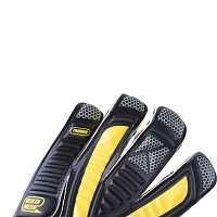 Уровень: Профессиональный Профессиональные вратарские перчатки для тренировок и игры ONE Wizard SL3 Hybrid гибридного кроя на основе кроя ROLL Finger помогают хорошо чувствовать мяч и отлично вентилируются. Материал ладони - оригинальный немецкий латекс Super толщиной 3 мм - обладает высокими характеристиками цепкости и износостойкости. Внутренняя подкладка из специальной пены толщиной 3 мм добавляет мягкости, внешняя сторона сделана из латекса Control (толщина 3 мм) и имеет специальный 3D-рельеф для игры кулаками. Большой палец обернут латексом по технологии Triwrap. Благодаря применению технологии Venta Mesh поддерживается комфортная температура внутри перчаток, а за счет специальной сетки 4D Mesh между пальцами обеспечивается приточная вентиляция для кистей. Технология Promove дарит комфортные ощущения во время игры. Латексная манжета на липучке надежно фиксирует кисть, а окно персонализации позволяет выделять ваши перчатки собственным именем или инициалами. VENTA MESH - технология обеспечения оптимальной вентиляции кистей за счет применения специальной сетки 4D Mesh в определенных зонах. Характеристики: Основной цвет: черный Дополнительный цвет: желтый Материал ладони: super latex 3 мм Материал тыльной стороны: syntetic latex 3 мм Крой: roll-hybrid Защита пальцев: нет Комплектация: перчатки, фирменный пакет с zip-lock