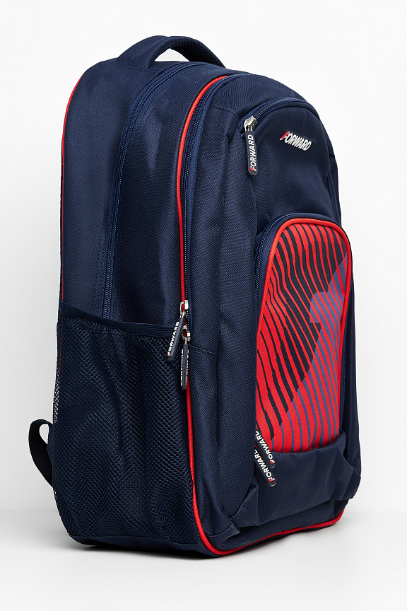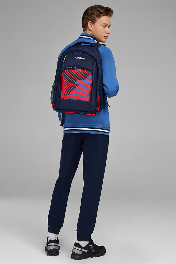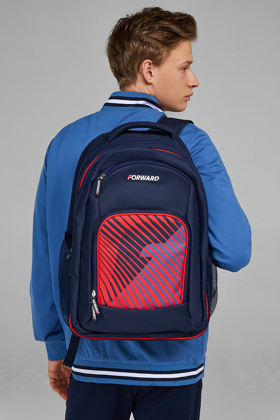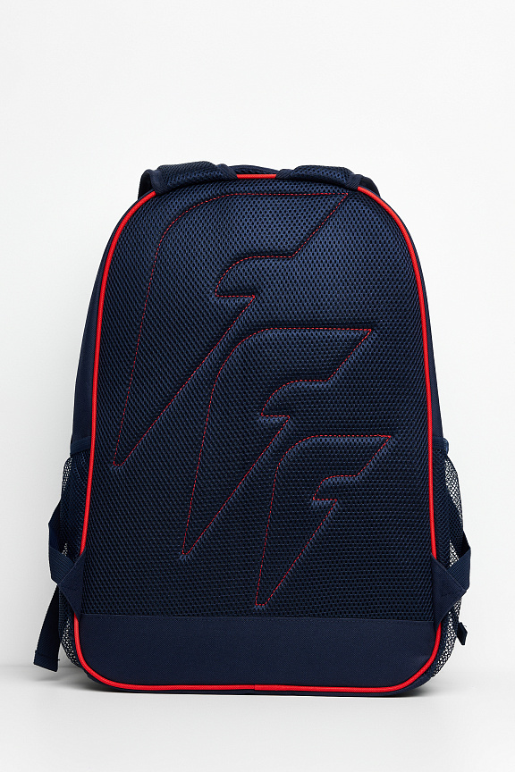 Рюкзак состоит из двух отделений, закрывающихся на двухзамковую тесьму молнии. На передней части рюкзака накладной карман на тесьме молнии. На боковых стенках выполнены карманы из сетки. В переднем накладном кармане выполнен внутренний карман органайзер из сетки с застежкой молнией. Передний карман и фронтальное отделение выполнены со светоотражающим кантом. Спинка и лямки продублированы мягким материалом с технологией ""Air-mesh"" для удобства эксплуатации и принятия анатомически удобной формы. Лямки регулируются по длине. Объем рюкзака 35 литров. ш*в*г 33*48*21см Нанесения: принт «F», декоративный принт Состав: 100% полиэстер, подкладка 100% полиэстер.
