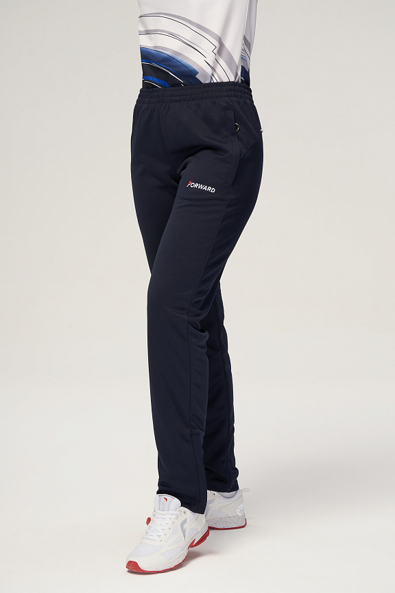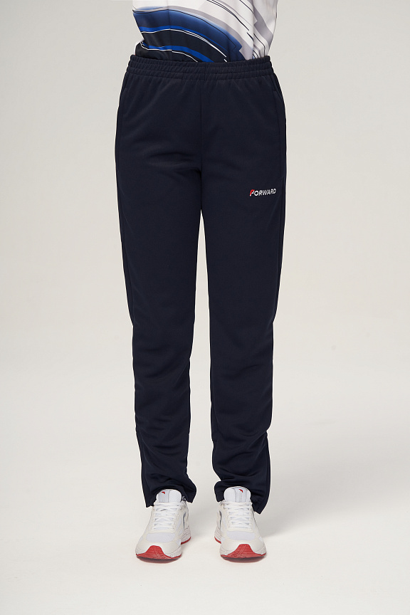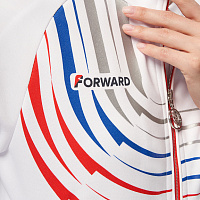 Куртка прямого силуэта, на подкладке из сетки. Полочка с центральной застежкой молнией. Воротник стойка. Боковые карманы прорезные с тесьмой молнией. Рукава покроя реглан. Воротник, манжеты и пояс куртки обработаны трикотажным полотном ластик. Нанесения на куртке: принт «FORWARD», фирменный принт. Брюки прямого силуэта, боковыми карманами на тесьме молнии. Пояс с эластичной тесьмой. Ширина пояса регулируется шнуром, вставленным внутрь. По боковым швам выполнены вставки с контрастными кантами. Низ брюк обработан в подгибку с эластичным шнуром и фиксаторами, для регулировки ширины. Нанесения брюки: принт «FORWARD». Состав: Ткань верха 100% Полиэстер, 250г/м², подкладка сетка 100% Полиэстер.