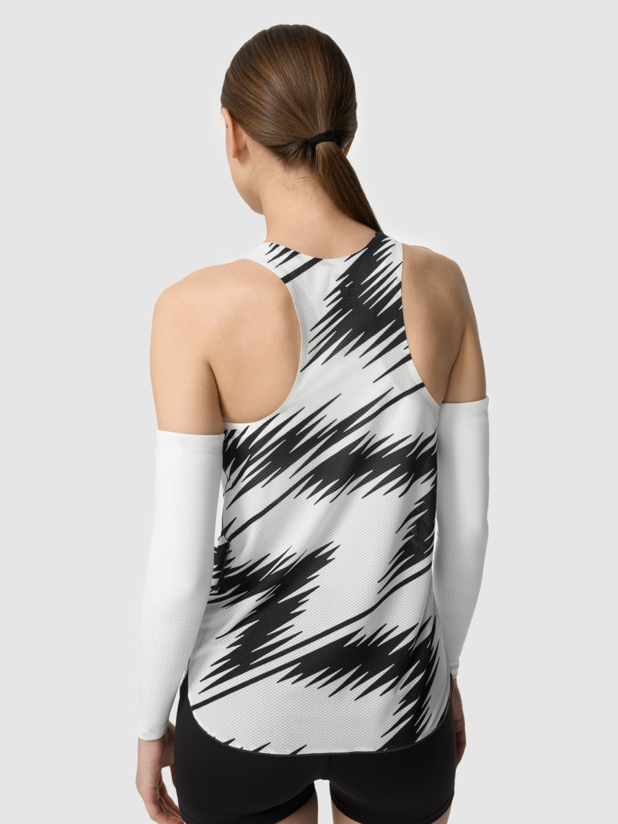 Подойдёт для пробежек и соревнований весной, летом и осенью при температуре от +10 до +30°C. Майка сшита из дышащей ткани с влагоотводящей пропиткой QuickDry® для быстрого высыхания. Функциональная серия Про создана для быстрого бега! Григорий Лазарев, основатель бренда GRI: «Майка сделана из двух материалов: нашей классической ткани GRI и облегчённой сетки. В этом году мы сделали нанесение в виде молнии на груди, чтобы отразить идею быстрого бега. Принты получились заметными, на соревнованиях будут выглядеть просто супер! Мне нравится и черно-белый, и огненный». Детали • Передняя и задняя панели из разных тканей. • Лёгкая, дышащая, быстросохнущая ткань. • Светоотражающий принт в виде молнии на груди. • Светоотражающие ленты по бокам. • Клееные швы. Состав Основа: 85% полиэстер, 15% спандекс. Вставки: 94% полиэстер, 6% спандекс. Ткани и технологии Влагоотводящая пропитка QuickDry® для быстрого высыхания ткани. Температурный режим От +10°C до +30°C. Рекомендации по уходу • Машинная стирка 30°C. • Отжим на 600 оборотах. • Вертикальная сушка. • Сушка в машине запрещена. • Отбеливание запрещено. • Глажение запрещено. • Отпаривание не рекомендуется.