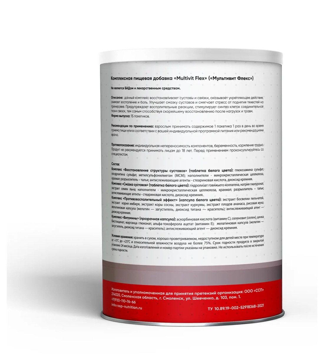 Описание: данный комплекс восстанавливает суставы и связки, оказывает укрепляющее действие, снимает воспаление и боль. Улучшает смазку суставов и смягчает стресс от поднятия тяжестей на тренировке. Предупреждает воспалительные реакции, стимулирует синтез клеток соединительной ткани связок, тем самым способствуя скорейшему восстановлению после нагрузок и травм. Форма выпуска: 15 пакетиков. Рекомендации по применению: взрослым принимать содержимое пакетико 1 раз в день во время приема пищи или в соответствии с вашей индивидуальной программой питания или рекомендациями врача. Противопоказания: индивидуальная непереносимость компонентов, беременность, кормление грудью. Продукт не рекомендуется принимать лицам до 18 лет. Перед применением проконсультируйтесь со специалистом. Состав: Комплекс «Восстановление структуры суставов» (таблетка белого цвета): глюкозамина сульфат, хондроитина сульфат, метилсульфонилметан (МСМ); наполнители - микрокристаллическая целлюлоза, крахмал; разрыхлитель - тальк; антислеживающие агенты - стеариновая кислота, диоксид кремния. Комплекс «Смазка суставов» (таблетка белого цвета): гидролизат говяжьего коллагена, натрия гиалуронат, экстракт семян льна; наполнители - микрокристаллическая целлюлоза, крахмал; разрыхлитель - тальк; антислеживающие агенты - стеариновая кислота, диоксид кремния. Комплекс «Противовоспалительный эффект» (капсула белого цвета): экстракт босвелии пильчатой, экстракт корня имбиря, экстракт коры сосны, экстракт куркумы, экстракт плодов ананаса, рисовая мука; платиновая капсула (желатин — загуститель, диоксид титана — краситель); антислеживающий агент — диоксид кремния. Комплекс «Витамины» (прозрачная капсула): аскорбиновая кислота (витамин С), селеновит (селен), цинка бисглицинат, марганца глюконат, альфа-токоферола ацетат (витамин Е); желатиновая капсула (желатин загуститель, диоксид титана — краситель); антислеживающий агент — диоксид кремния. Условия хранения: хранить в сухом, хорошо проветриваемом, недоступном для детей месте при температуре от +5 до +25 C и относительной влажности воздуха не более 75%. Срок годности продукта в закрытой упаковке 24месяца. Дата изготовления и номер партии указаны на упаковке. Не использовать после истечения срока годности.