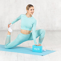 Блок для йоги YB-200 от бренда STARFIT – это необходимый аксессуар для опоры при растяжке в йоге и стретчинге. Он подходит как новичкам, так и продвинутым пользователям. Плотность выше среднего позволяет иметь комфортный и эргономичный хват при высоком уровне устойчивости. Если вы пока не можете дотянуться руками до пола при выполнении позиций стоя и сидячих скручиваниях, то блок для йоги YB-200 – это то, что вам нужно. Блок изготовлен из легкого и долговечного материала (ЭВА), который не деформируется со временем. Нескользящая поверхность обеспечивает легкий и удобный захват, а прямоугольная форма со скошенными краями удобна для многофункционального использования. Преимущества: Лёгкий и долговечный материал (ЭВА); Многофункциональное использование благодаря продуманной форме; Нескользящая поверхность для комфортного захвата. Характеристики: Цвет: синий пастель Габариты (Д x Ш x В), см: 22,5 х 8 х 15 Материал: этиленвинилацетат Вес без упаковки, г: 115 Тип упаковки: цветной постер, стрейч-пленка Количество в упаковке, шт: 1 Производство: КНР