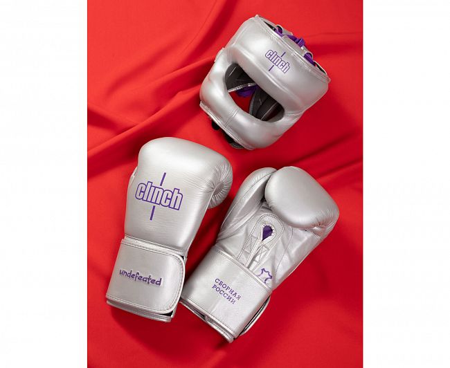ШЛЕМ БОКСЕРСКИЙ С БАМПЕРОМ CLINCH UNDEFEATED RUSSIAN TEAM СЕРЕБРИСТЫЙ C160RT