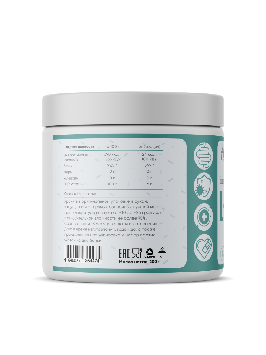 Fitrule Glutamine – одна из основных и самых частовстречаемых аминокислот в организме. Входит в состав подавляющего числа белков, в том числе и мышечных. Вместе BCAA составляет основу сократительных белков мышц – актина и миозина, а также другого мышечного белка – миоглобина. Глютамин оказывает огромную поддержку иммунной системе, так как обеспечивает синтез главных защитных белков – иммуноглобулинов (антител). Так же глютамин оказывает мощное антикатаболическое действие на мышцы, защищая их от разрушения, особенно при низкоуглеводных и низкокалорийных диетах. Глютамин при необходимости способен метаболизироваться (превращаться) в любую другую заменимую аминокислоту в организме, при ее дефиците. Размер порции: 6 грамм Количество порций: 33 Состав на одну порцию: L-глутамин – 6000 мг Рекомендации по приему: Принимать по 3-6 грамм в день после еды, после тренировки или перед сном.