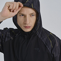 Мужская ветровка из коллекции ADVANCED RUNNING в черном исполнении c серо-зеленым зональным принтом — функциональный верхний слой для регулярных беговых тренировок. Модель изготовлена из прочного и эластичного текстиля с составом нейлона и спандекса, что в сочетании с артикулированным кроем обеспечивает свободу движений. Технология WIND RESISTAN обеспечивает надежную защиту от ветра. Дополнительно материал обладает защитой от ультрафиолета UPF50 (A-UV PROTECT). Технология A-CHILL TOUCH в сочетании с конструкцией воздухопроницаемого "окна" на спине обеспечивает влагоотведение и поддержание комфортной температуры тела. Крой Regular Fit с удлиненной спинкой гарантирует удобную посадку и защиту поясницы от ветра и холода. Капюшон плотно прилегает, обеспечивая дополнительную защиту, а резинки на рукавах фиксируют посадку и препятствуют проникновению ветра. Ветровка оснащена двумя боковыми карманами на молниях для хранения мелочей. Светоотражающие элементы — небольшой логотип на груди и надпись Anta Running в нижней части спины — повышают безопасность в условиях низкой освещенности. Эта ветровка сочетает в себе защиту, комфорт и современный стиль, делая ее незаменимым элементом беговой экипировки. СОСТАВ: Нейлон 88%, Спандекс 12%