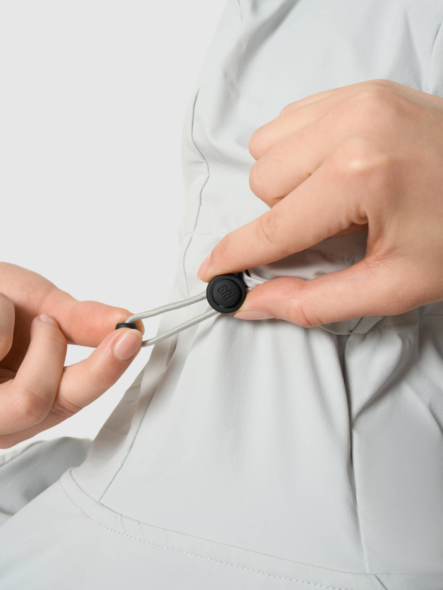 Подойдёт для пробежек весной, летом и осенью при температуре от 0 до +12°C. Куртка сшита из ткани с водоотталкивающей DWR-пропиткой, которая защитит от небольших осадков. В зависимости от погоды под куртку можно надеть футболку или лонгслив. Григорий Лазарев, основатель бренда GRI: «Основное нововведение — центральная молния, которая расстёгивается и сверху, и снизу. В тёплую погоду её можно расстегнуть снизу на проветривание, чтобы куртка не болталась на бегу. В остальном это всё та же удобная модель из эластичного нейлона». Детали • Боковые карманы с дополнительными сетчатыми кармашками внутри. • Регулировка посадки по нижнему краю куртки. • Светоотражающая точка на плече. • Регулировка капюшона на затылке. • Удобные пуллеры на всех молниях. • Клапан для вентиляции на спине. • Ткань с DWR-пропиткой. • Двухсторонняя центральная молния. Состав 85% нейлон, 15% спандекс. Ткани и технологии • DWR-пропитка защитит от небольшого дождя. Через 10-15 минут под сильным дождём изделие начнёт намокать. Температурный режим От 0°C до +12°C Рекомендации по уходу • Машинная стирка 30°C. • Отжим на 600 оборотах. • Вертикальная сушка. • Сушка в машине запрещена. • Отбеливание запрещено. • Глажение только в режиме отпаривания.