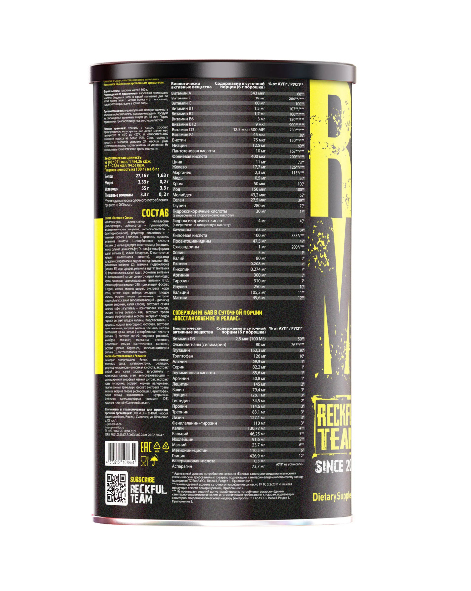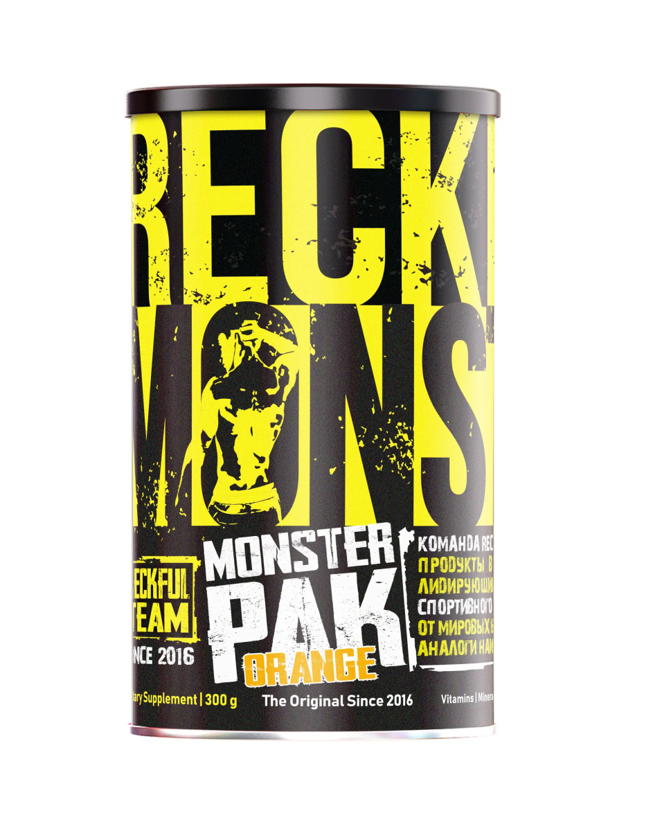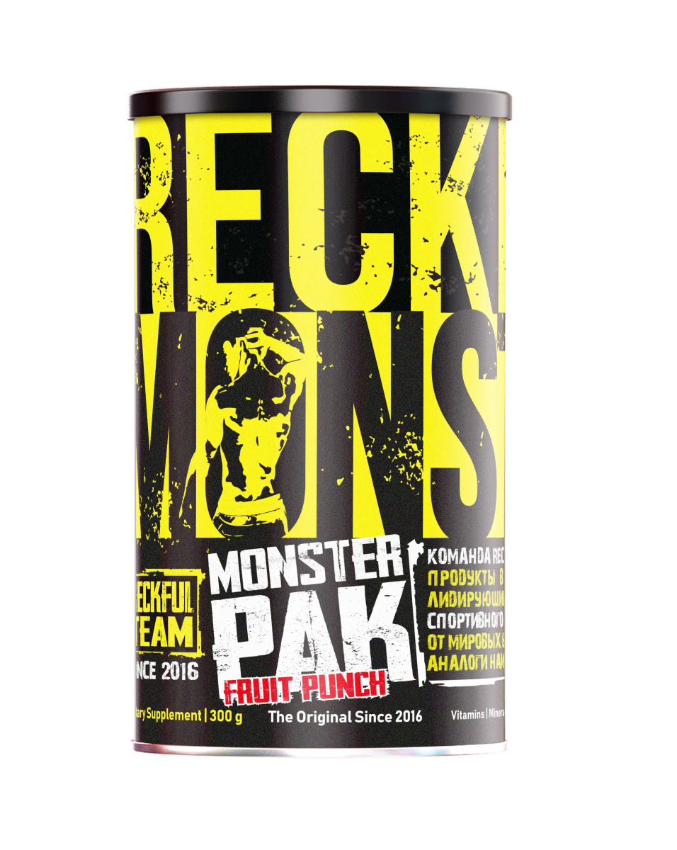 Reckful ® Monster PAK Powder 300g – комплексная поддержка для активных тренировок и восстановления Reckful ® Monster PAK Powder – это мощный комплекс для тех, кто хочет получить максимальную отдачу от своих тренировок. Состав включает в себя смесь витаминов, минералов, аминокислот и других активных ингредиентов, которые обеспечивают не только рост и восстановление мышц, но и поддерживают общий уровень энергии и выносливости. Идеальный продукт для спортсменов и любителей активного образа жизни, которым необходим полный спектр питательных веществ для достижения лучших результатов. Преимущества Reckful ® Monster PAK Powder: – Мощная поддержка мышц – комплекс аминокислот и витаминов способствует восстановлению и росту мышечной массы – Энергия на весь день – усиление общей выносливости и повышение уровня энергии для интенсивных тренировок – Улучшение фокуса и концентрации – помогает поддерживать концентрацию во время тренировок и других физических нагрузок – Поддержка иммунной системы – включает компоненты, которые укрепляют иммунитет, защищая от усталости и перетренированности – Удобная форма порошка – легкость приготовления и быстрое усвоение активных компонентов Аппетитные вкусы Reckful ® Monster PAK Powder: – Cherry – насыщенный вкус спелой вишни, который придаст энергии и поднимет настроение – Fruit Punch – яркий и сладкий фруктовый микс с нотками цитрусовых и ягод, который освежит после тренировки – Orange – классический вкус апельсина, который подарит свежесть и бодрость на весь день Как принимать: Смешайте 10 г порошка (1 порция) с 250-300 мл воды и принимайте перед тренировкой или в любое время дня для поддержания энергии и восстановления. Reckful ® Monster PAK Powder – идеальный комплекс для тех, кто хочет зарядиться энергией, улучшить свои результаты и максимально эффективно восстанавливаться после тренировок.