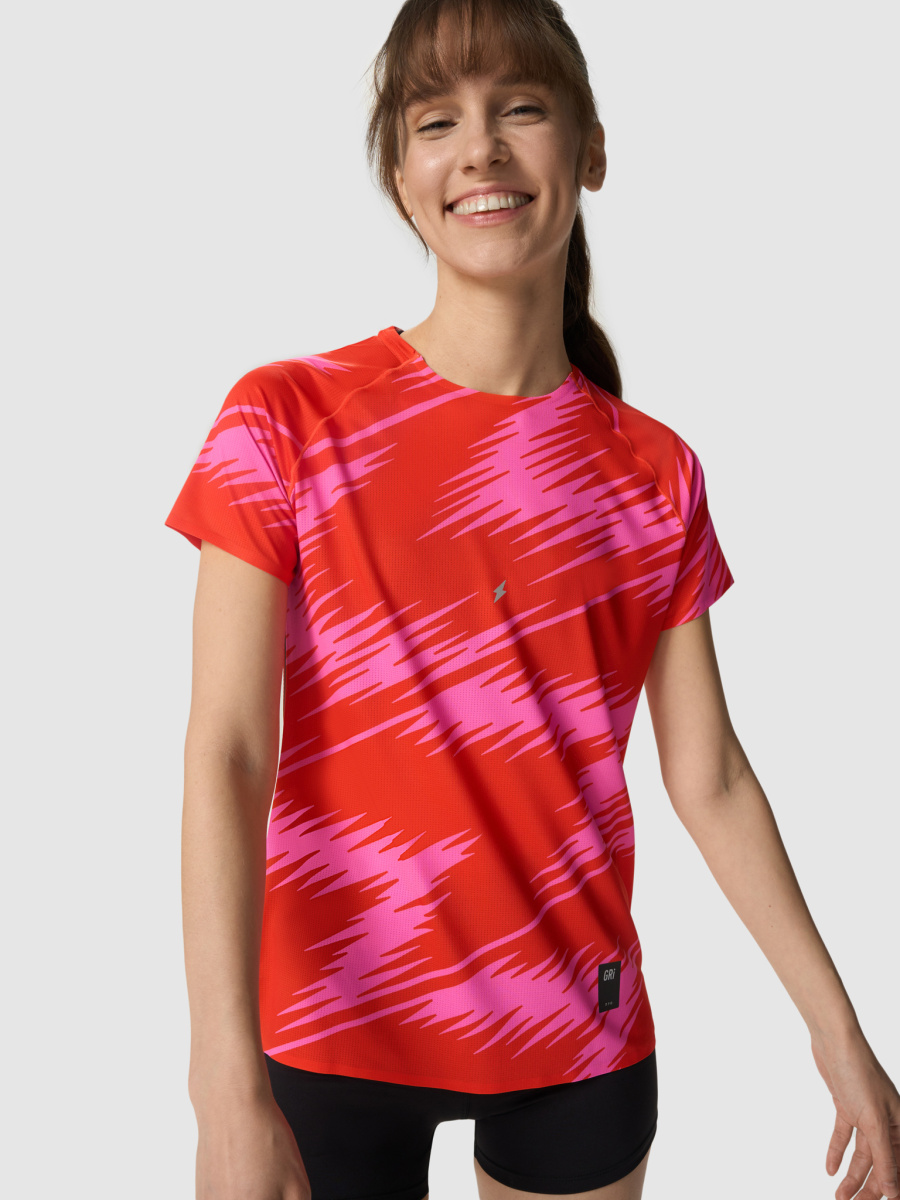 Подойдёт для пробежек и соревнований весной, летом и осенью при температуре от +10 до +30°C. Футболка сшита из дышащей ткани с влагоотводящей пропиткой QuickDry® для быстрого высыхания. Функциональная серия Про создана для быстрого бега! Григорий Лазарев, основатель бренда GRI: «Футболка Про сшита из двух материалов: нашей классической ткани GRI и облегчённой сетки. В этом году мы сделали нанесение в виде молнии на груди, чтобы отразить идею быстрого бега. Принты получились заметными, на соревнованиях будут выглядеть просто супер! Мне нравится и черно-белый, и огненный». Детали • Передняя и задняя панели из разных тканей. • Лёгкая, дышащая, быстросохнущая ткань. • Светоотражающий принт в виде молнии на груди. • Светоотражающие ленты по бокам. • Клееные швы на вороте и рукавах. • Рукава реглан. Состав Основа: 85% полиэстер, 15% спандекс. Вставки: 94% полиэстер, 6% спандекс. Ткани и технологии • Влагоотводящая пропитка QuickDry® для быстрого высыхания ткани. Температурный режим От +10°C до +30°C. Рекомендации по уходу • Машинная стирка 30°C. • Отжим на 600 оборотах. • Вертикальная сушка. • Сушка в машине запрещена. • Отбеливание запрещено. • Глажение запрещено. • Отпаривание не рекомендуется.